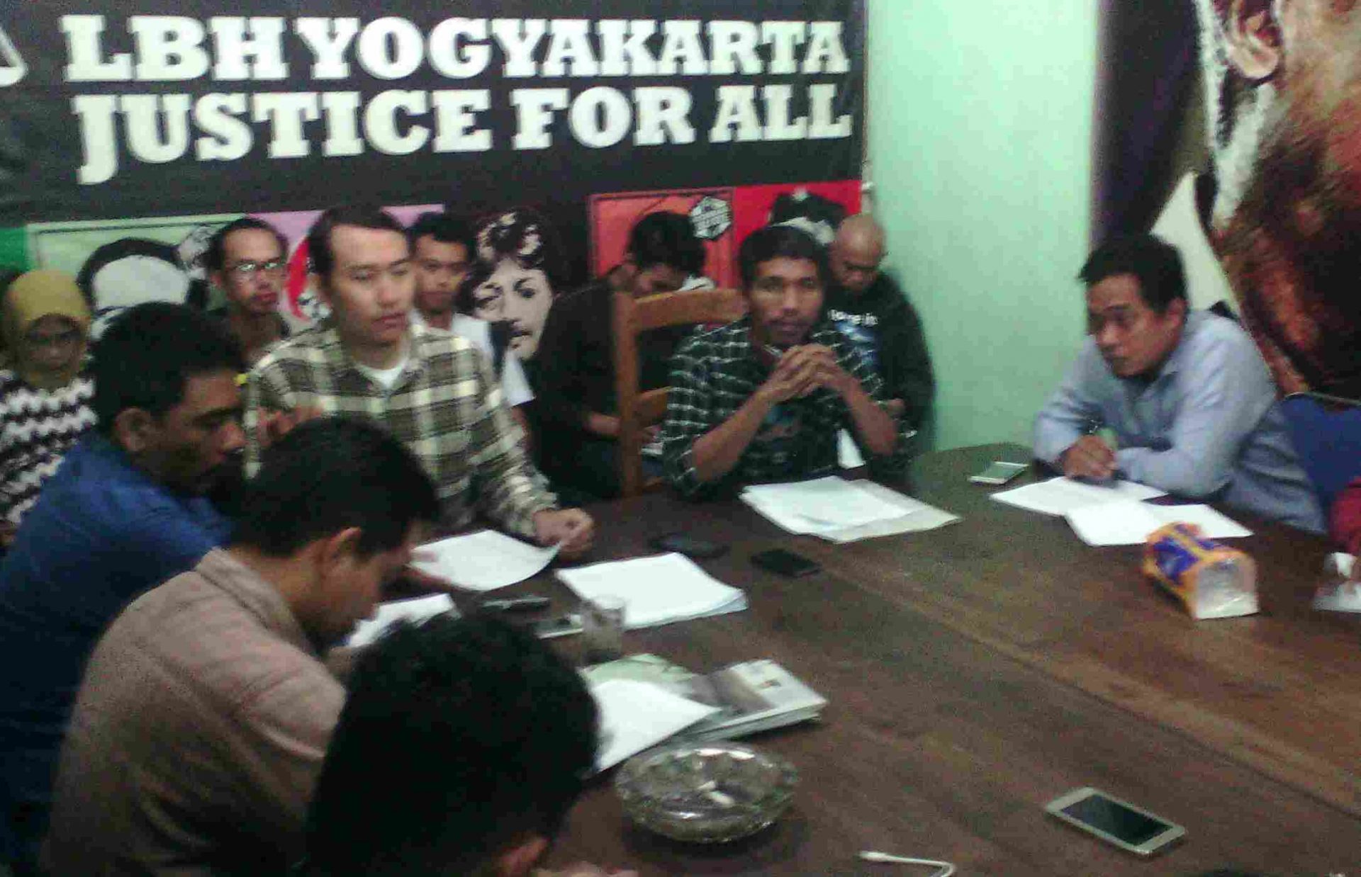 Gestob gelar jumpa pers terkait penolakan rencana groundbreaking bandara baru Kulon Progo, di LBH Yogyakarta, Kamis (26/1/2017). (Sutriyati/kabarkota.com)