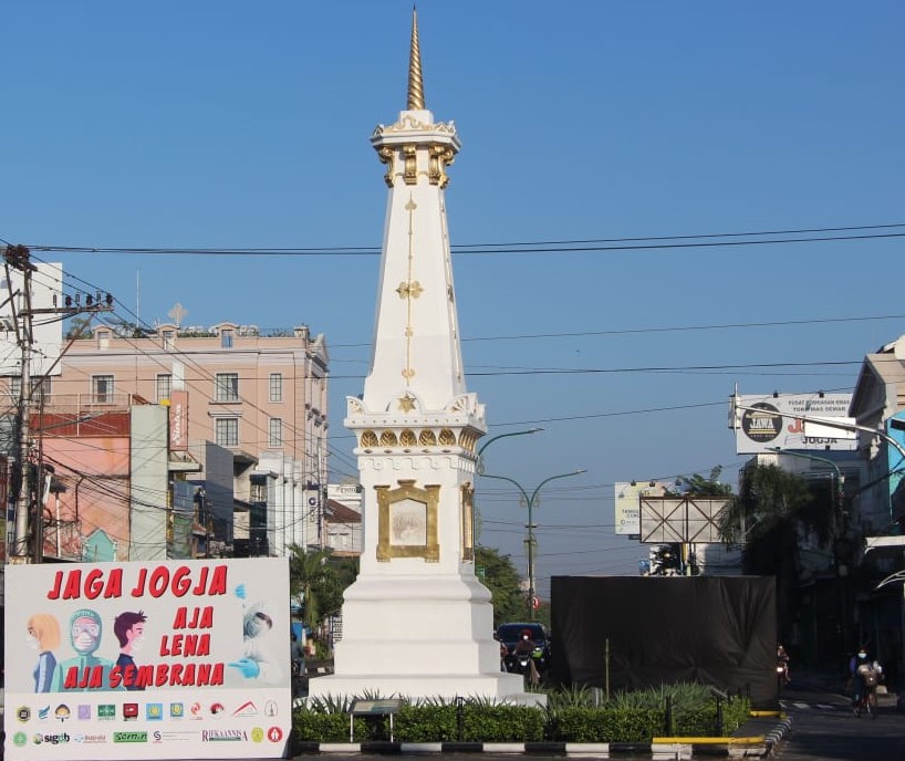 Banner “Jaga Jogja, Aja Lena, Aja Sembrana” yang dipasang di Tugu Golong-Gilig, pada 1 – 2 Agustus 2020. (dok. istimewa)