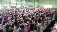 Sekitar seribu mahasiswa baru STIE YKPN mengangkat box nasi gudeg …
