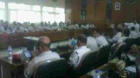 Ratusan massa Forum PTY menanti kedatangan wakil rakyat untuk melakukan …