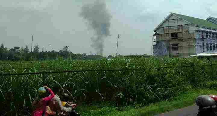 Kepulan asap diduga dari pesawat yang jatuh di kompleks Satrian AAU Yogyakarta, Minggu (20/12). (dok.Trika)