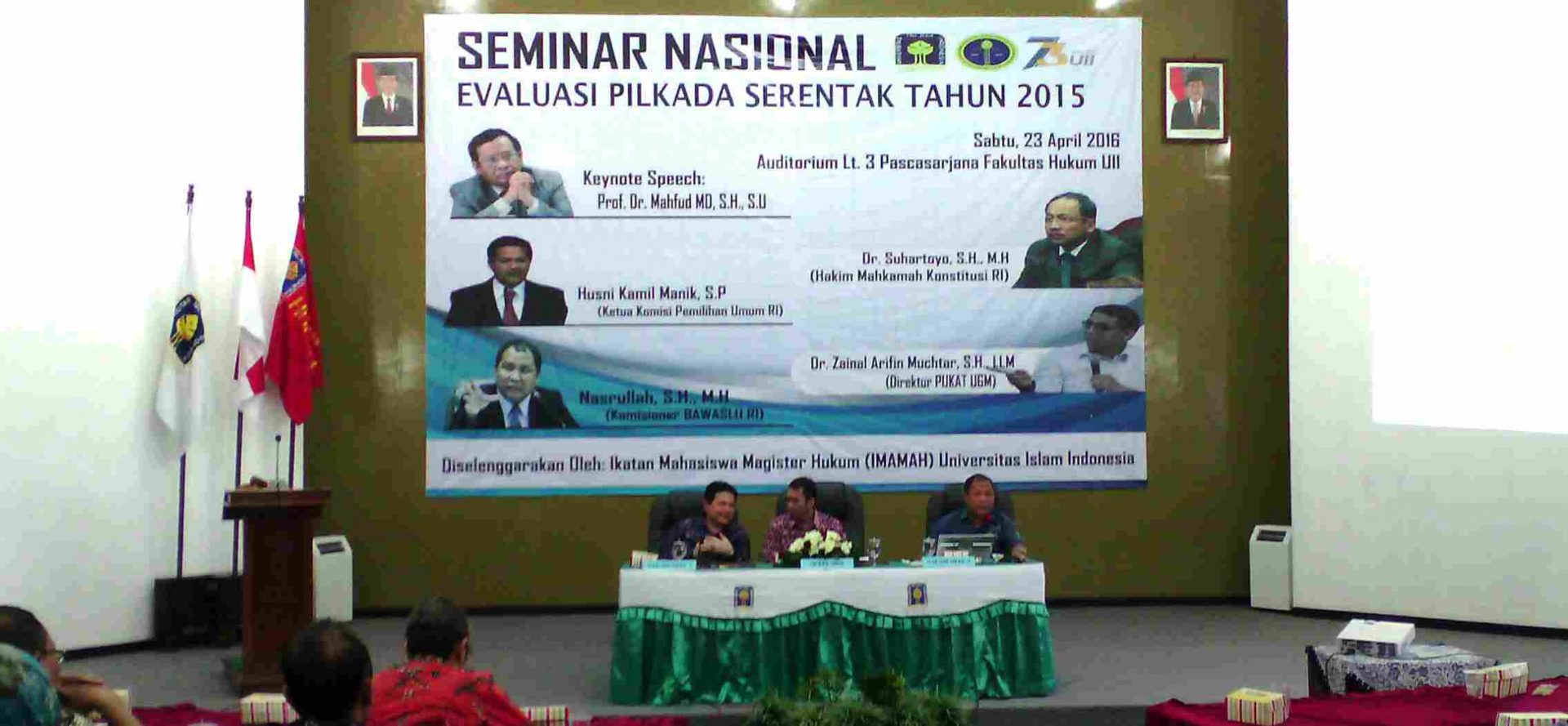 Seminar Nasional: Evaluasi Pilkada Serentak Tahun 2015, di Pasca Sarjana Fakultas Hukum Universitas Islam Indonesia (FH UII), Sabtu (23/4/2016). (Sutriyati/kabarkota.com)