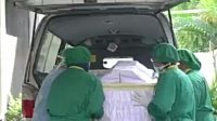 Ilustrasi: Jenazah salah seorang pasien positif Covid-19 yang akan diberangkatkan …