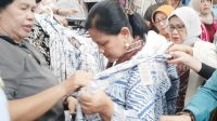 Ibu Negara RI, Iriana Jokowi saat tengah mencoba gamis batik …