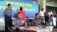 Wakapolda DIY, Abdul Hasyim Gani (kanan) bersama Direskrimum, Hudit Wahyudi …