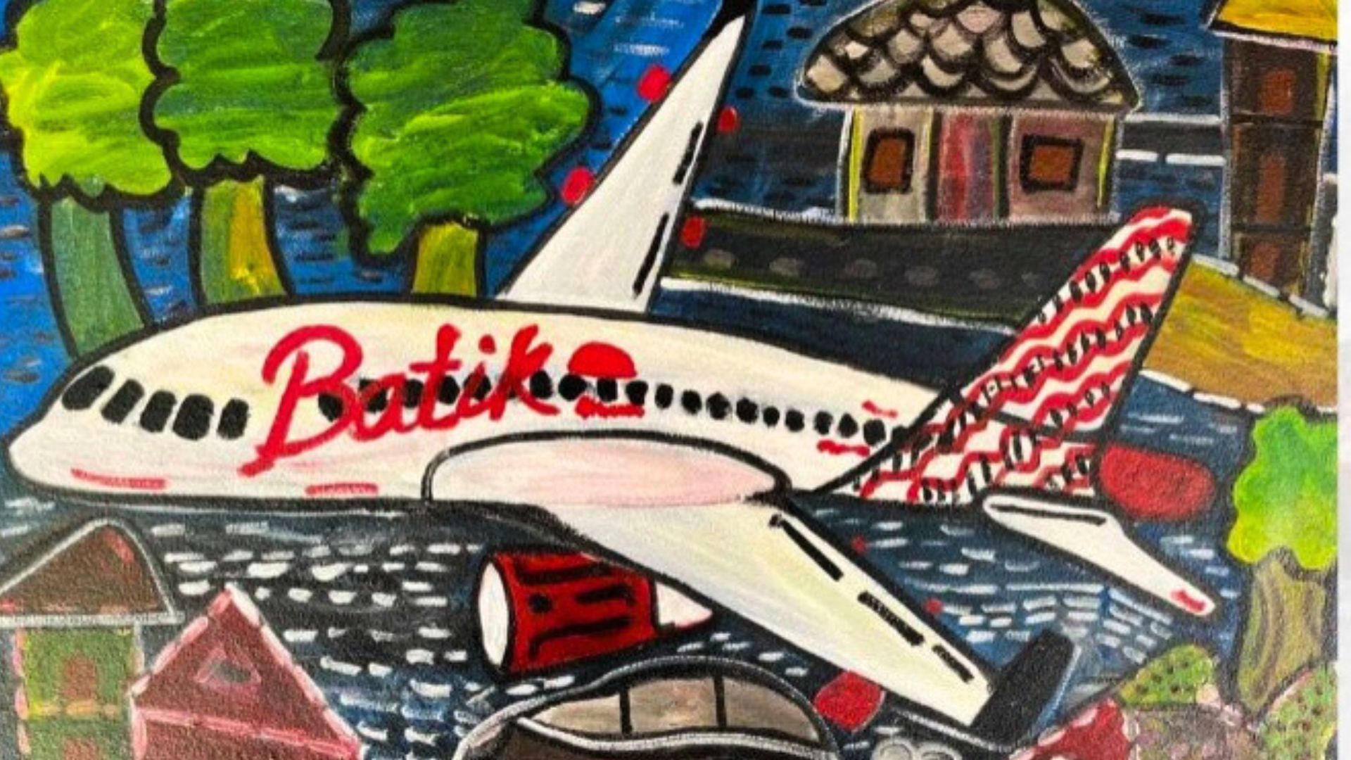 Tamta Hatmaka selaku guru lukis Way menambahkan, lukisan bergambar pesawat itu bisa diselesaikan dalam waktu tiga jam saja.