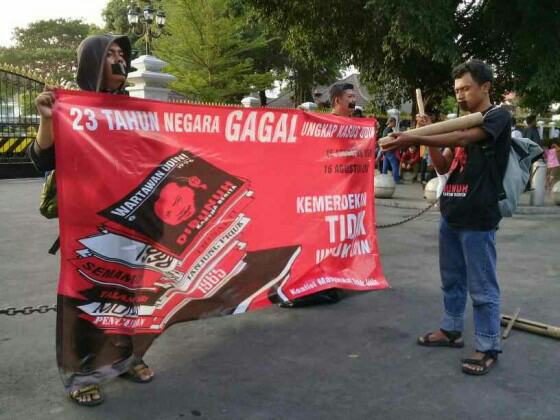 Aksi 16-an AJI Yogyakarta dan K@MU di depan halaman Gedung Agung Yogyakarta (dok. kabarkota.com)