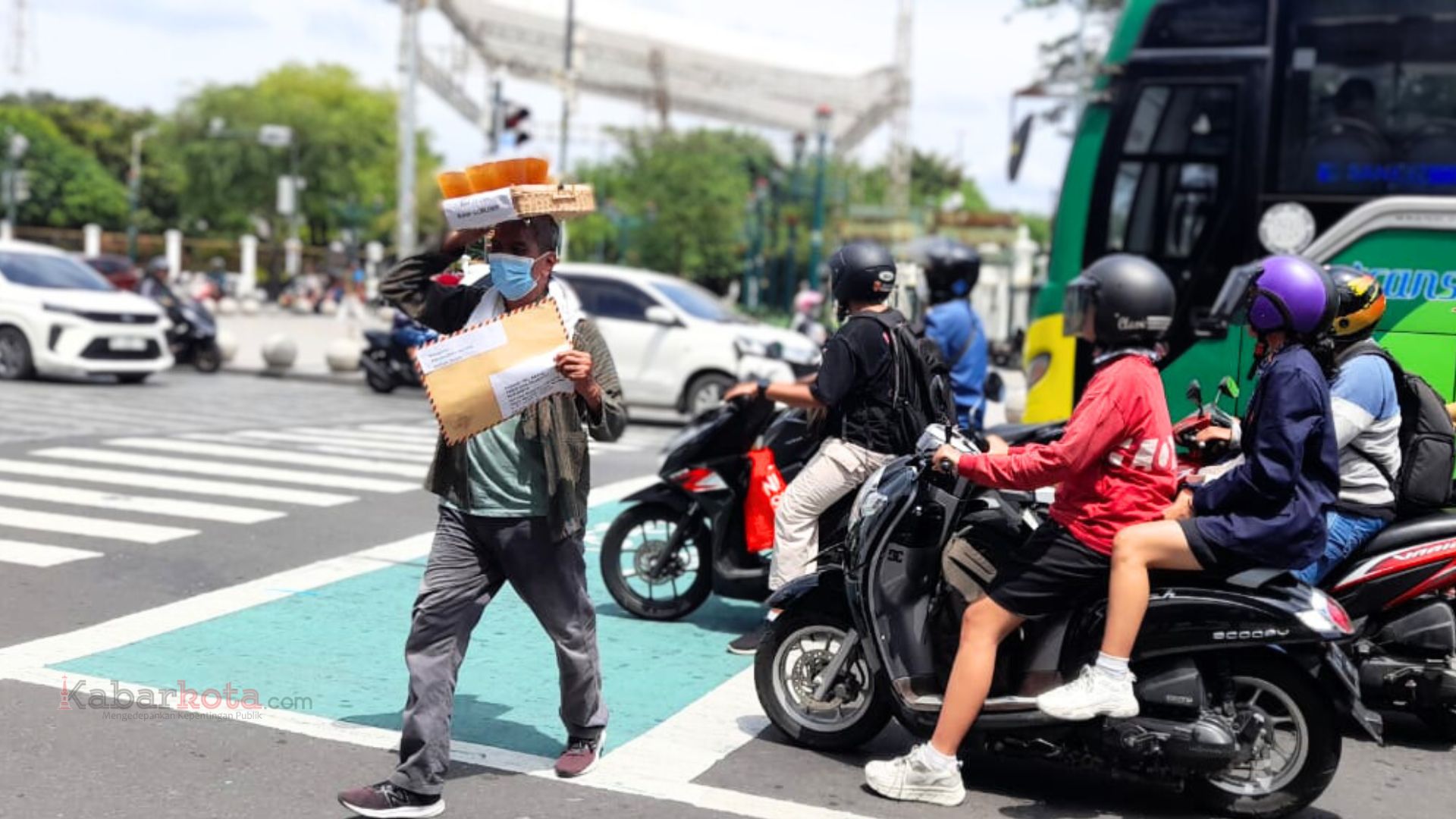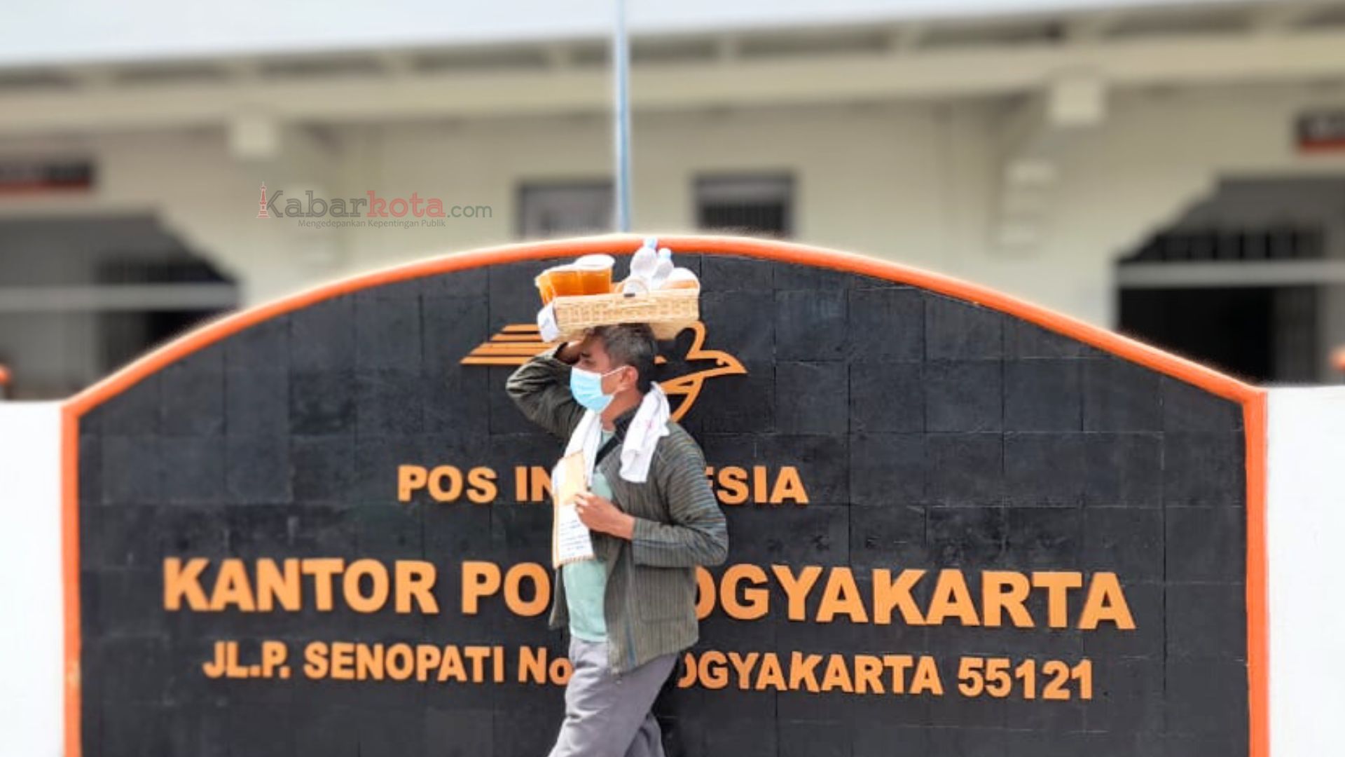 YOGYAKARTA (kabarkota.com) – Pria berbaju lurik dengan dalaman kaos oblong, dan handuk di leher. Dengan mengenakan celana panjang abu-abu dan sepatu kets, ia menjunjung beberapa gelas es teh dengan box bertuliskan “Jual Es Teh bukan Goblok!!” yang ia taruh di atas kepalanya, sembari menenteng amplop coklat besar. Ia menyeberangi jalan sisi timur titik nol KM Yogyakarta, menuju ke Kantor Pos Besar yang lokasinya persis di seberang jalan raya tersebut.
