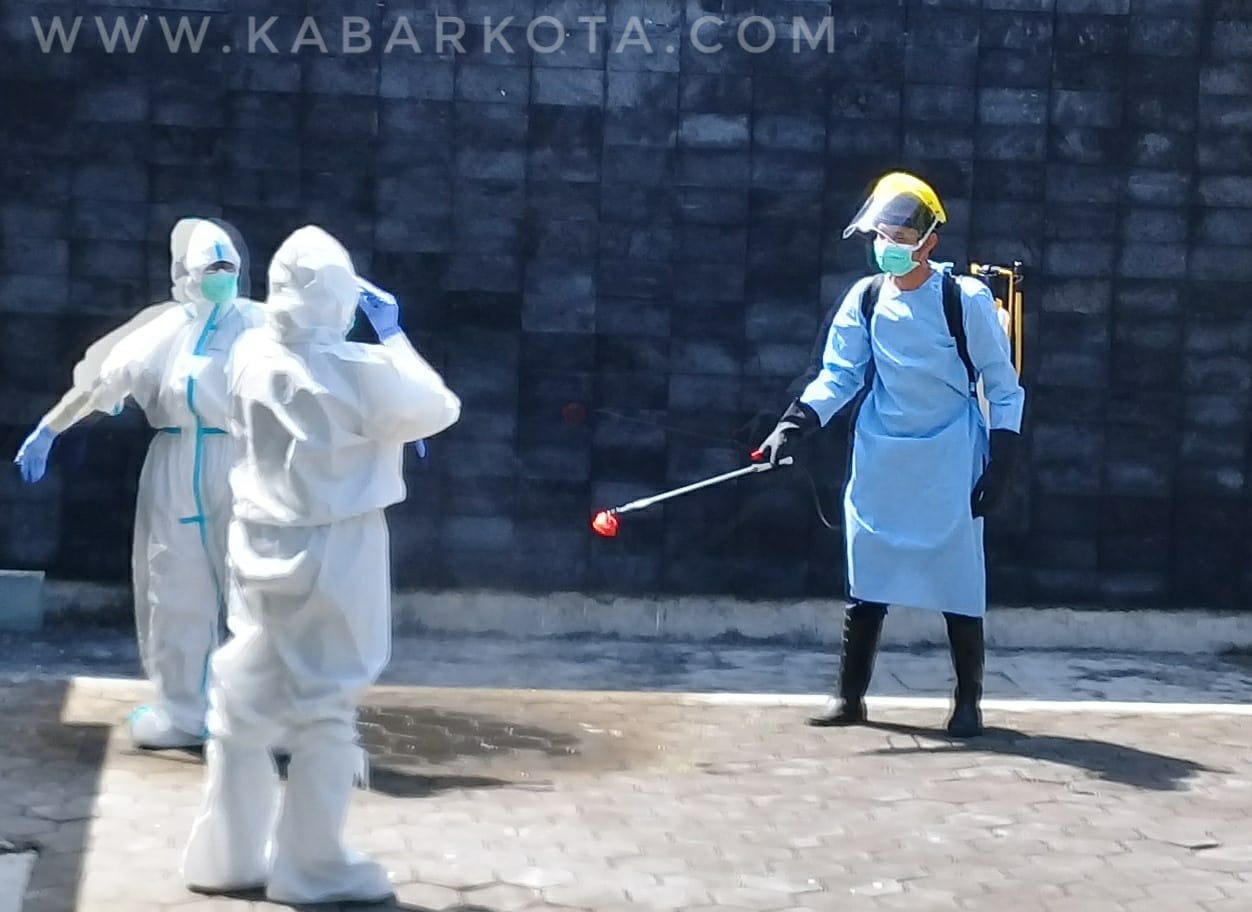 Ilustrasi: Dua Tenaga Kesehatan sedang disemprot cairan disinfektan (dok. kabarkota.com).