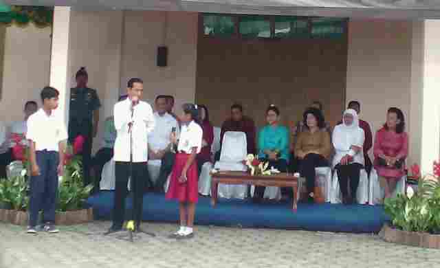 Kemudian, mantan Walikota Solo ini juga menanyai salah satu siswi SD Negeri Tamanan 3, Dian, dengan pertanyaan yang hampir sama. "Kok belajarnya sedikit-sedikit semua. Kapan pinter," ucap Jokowi yang disambut dengan tawa tamu undangan yang hadir.