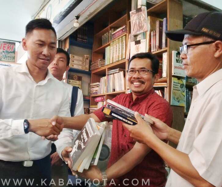 Penyerahan buku secara simbolik dilakukan oleh perwakilan pedagang buku, Untung kepada Kuasa Hukum KPJ, Aryanto, di kompleks Shopping Center Yogyakarta.