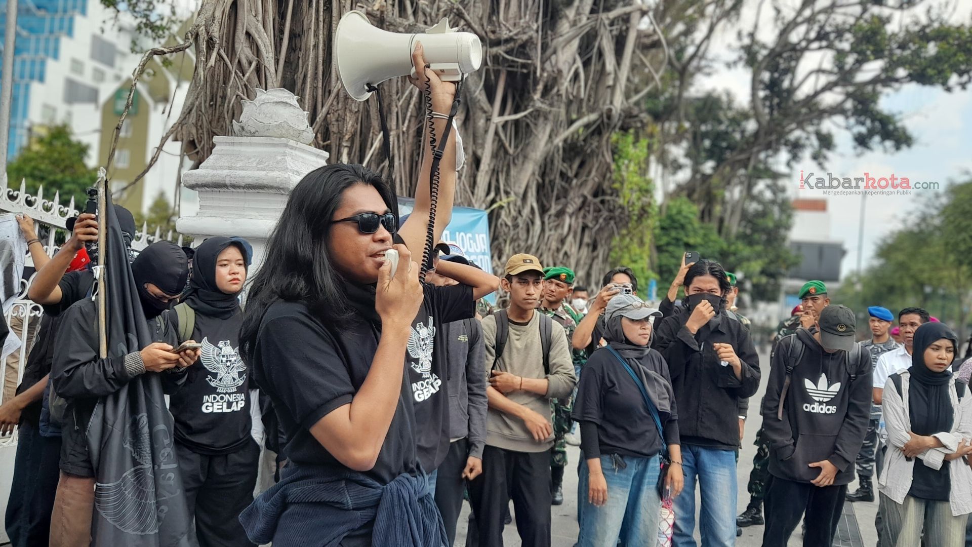 Dalam orasinya, Aziz, salah satu demonstran dari elemen masyarakat sipil mendesak agar aparat mengusut tuntas kasus kematian driver Ojek Online (Ojol), Affan Kurniawan yang meninggal akibat terlindas Kendaraan Taktis (Rantis) Brimob Polda Metro Jaya saat aksi buruh di Jakarta, baru-baru ini.