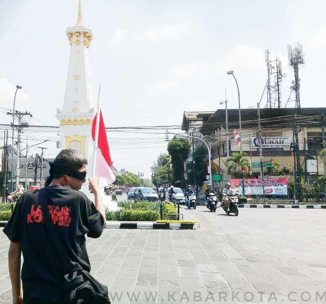 Pada kesempatan ini, Bahar juga melakukan aksi berjalan mundur dengan mata tertutup kain hitam. Aksinya itu dilakukan dari simpang empat tugu Pal Putih Yogyakarta ke utara halte bus Transjogja, sembari membawa bendera setengah tiang.