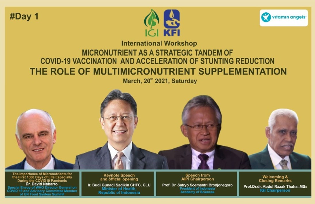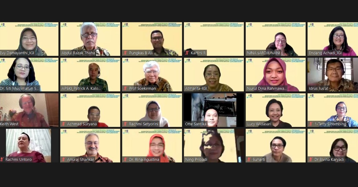 Untuk itu, Yayasan Kegizian untuk Pengembangan Fortifikasi Pangan Indonesia (KFI) dan Institut Gizi Indonesia (IGI) menyelenggarakan lokakarya bertema Micronutrient as a Strategic Tandem of Covid-19 Vaccination and Acceleration of Stunting Reduction; the Role of Multi-micronutrient Supplementation and Food Fortification (Gizi mikro sebagai Strategi Tandem dalam Pemberian Vaksinasi COVID-19 dan Peningkatan Penurunan Stunting: Peranan Suplementasi Gizi Mikro Multiple dan Fortifikasi Pangan).