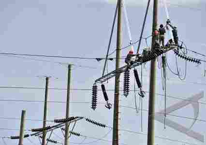 Para pekerja outsourcing membenahi kabel listrik di Bali. (antarafoto.com)