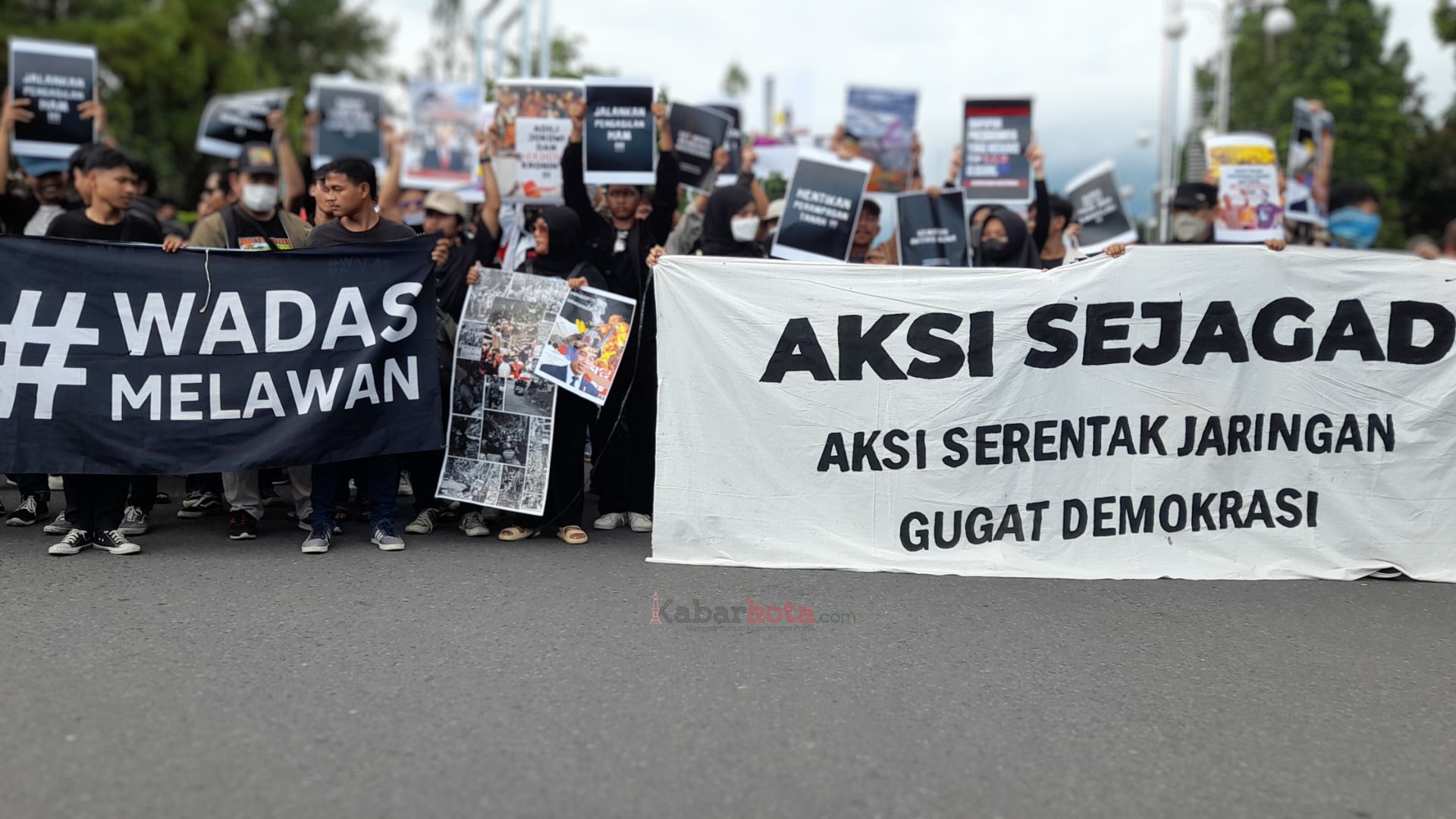 Dalam aksinya kali ini, salah satu yang menjadi tuntutan mereka adalah Presiden RI, Joko Widodo (Jokowi) dan kroni-kroninya diadili.