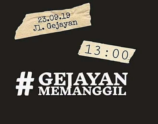 YOGYAKARTA (kabarkota.com) – Seruan aksi damai dengan tagar Gejayan Memanggil yang akan digelar pada Senin (23/9/2019) siang ini mengundang perhatian dari sejumlah kampus di Yogyakarta.