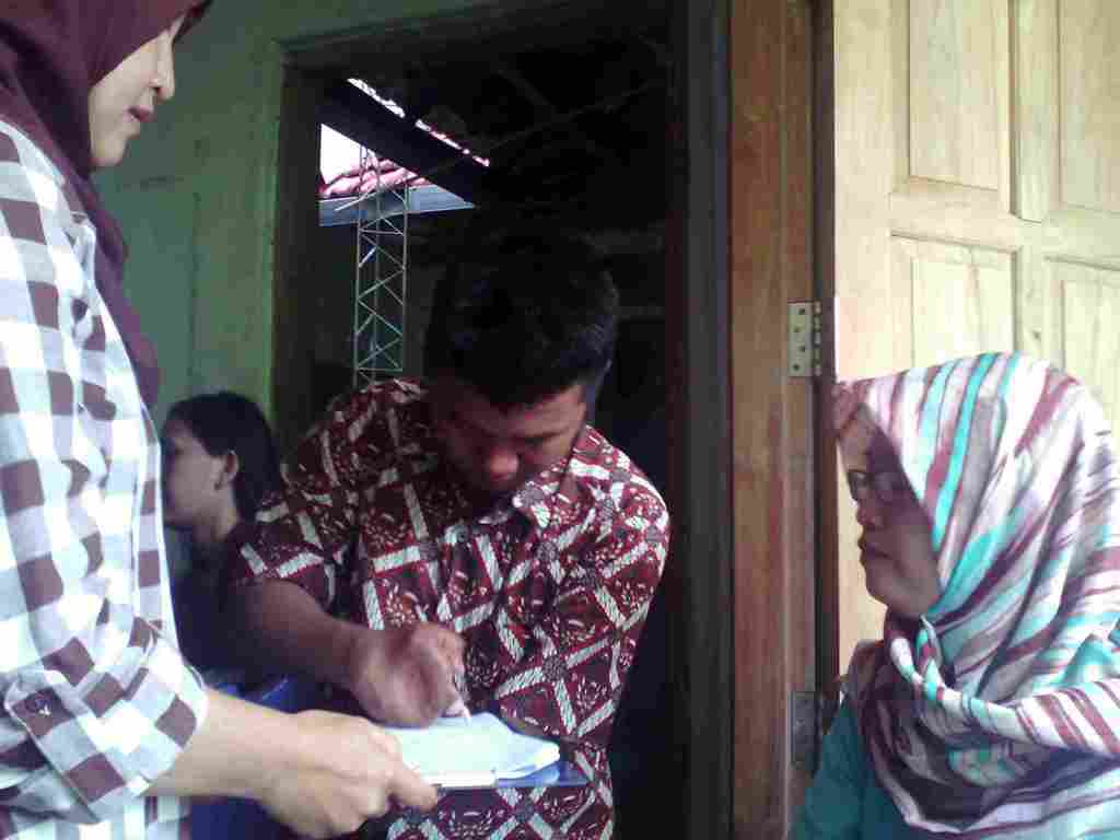 Seorang penyandang disabilitas tengah menansatangani petisi di Dria Manunggal, Kamis (14/1/2016). (Sutriyati/kabarkota.com)
