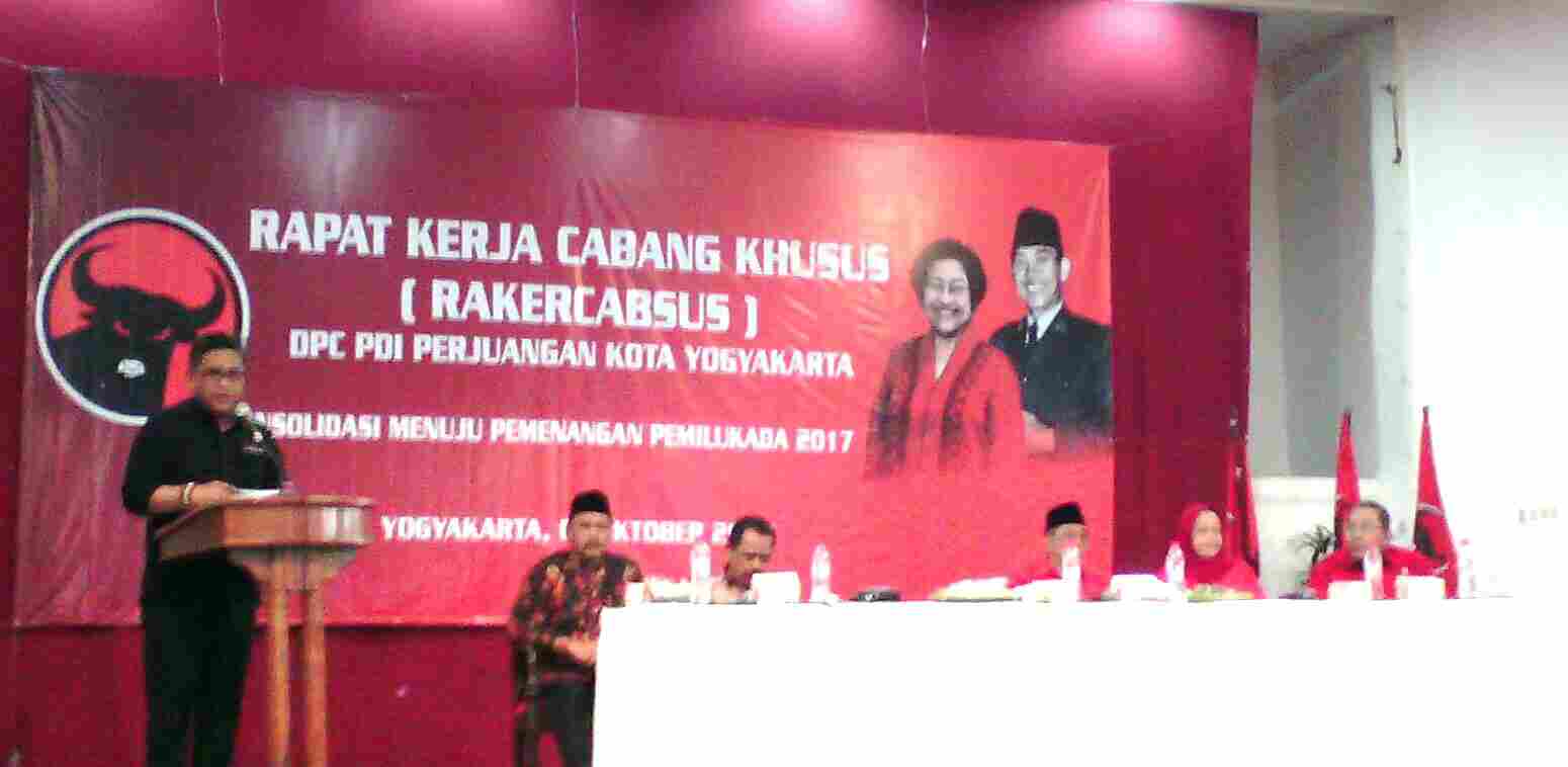 Rapat Kerja Cabang Khusus (Rakercabsus) DPC PDIP Kota Yogyakarta untuk pemenangan Pilkada 2017, di kompleks gedung Mandala Bhakti Wanitatama Yogyakarta, Minggu (2/10/2016). (Sutriyati/kabarkota.com)