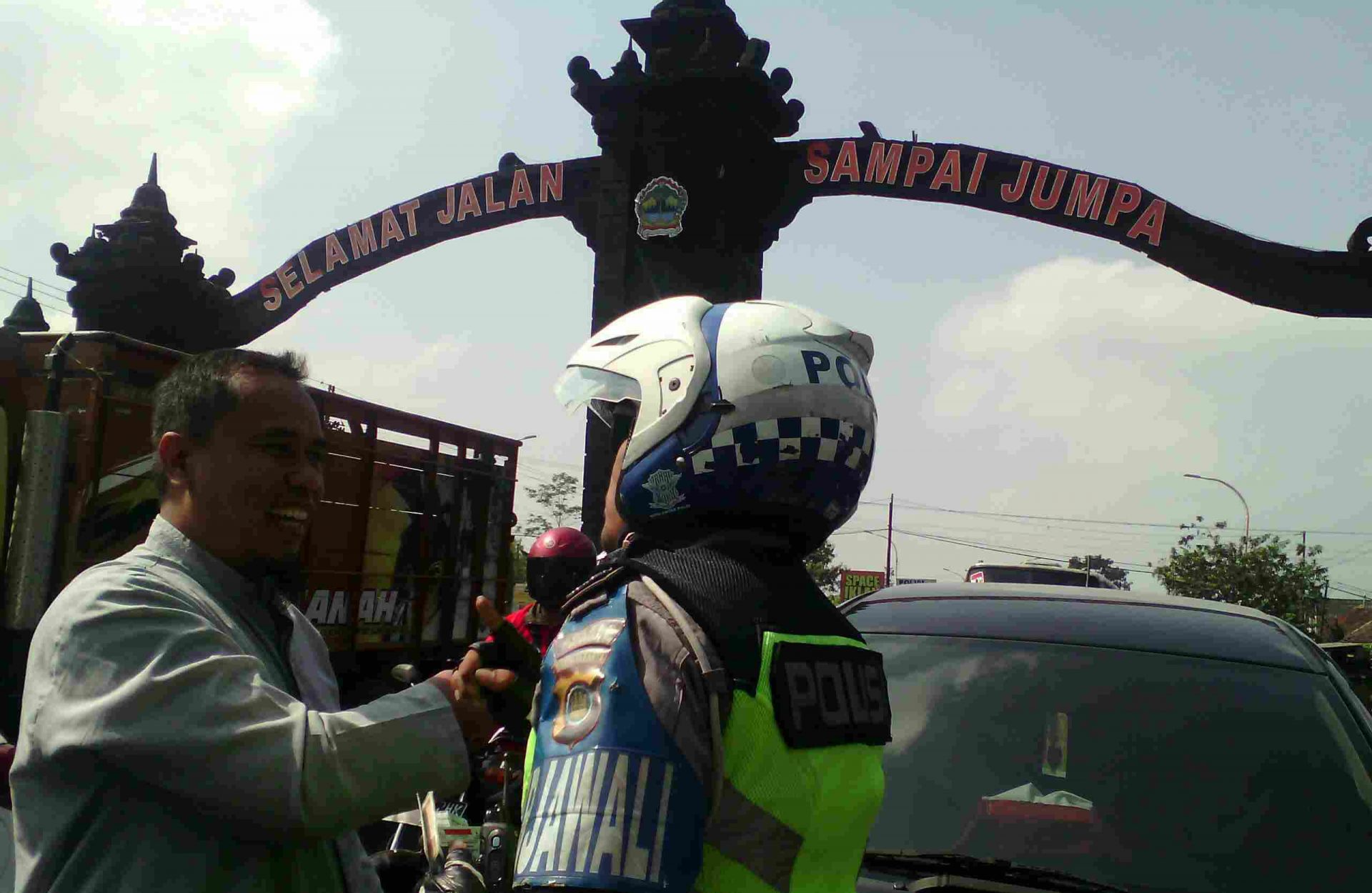 Petugas kepolisian tengah menghentikan salah satu pengemudi dari Yogyakarta yang melintas di perbatasan Tempel – Magelang, Jumat (8/9/2017). (sutriyati/kabarkota.com)