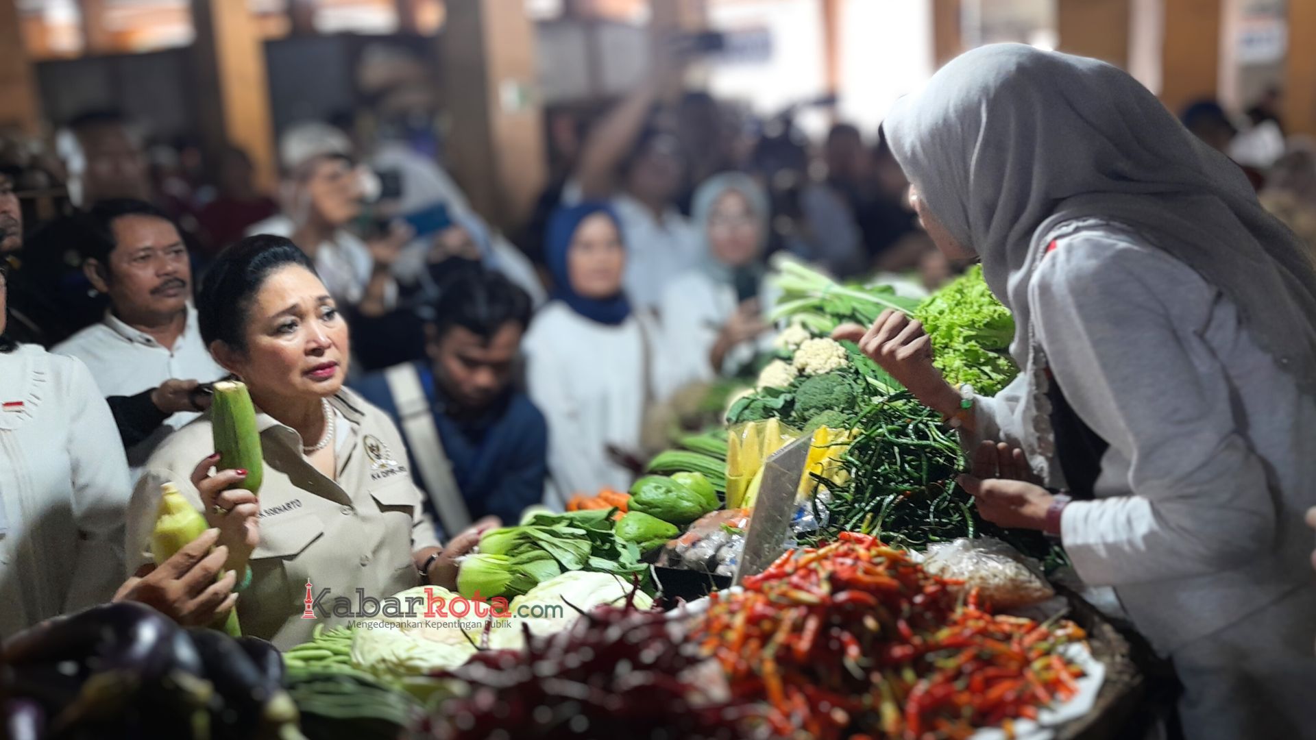 Kemudian, Titiek menyapa penjual sayuran, Ida untuk menanyakan terkait harga-harga beragam sayur-mayur di lapaknya.