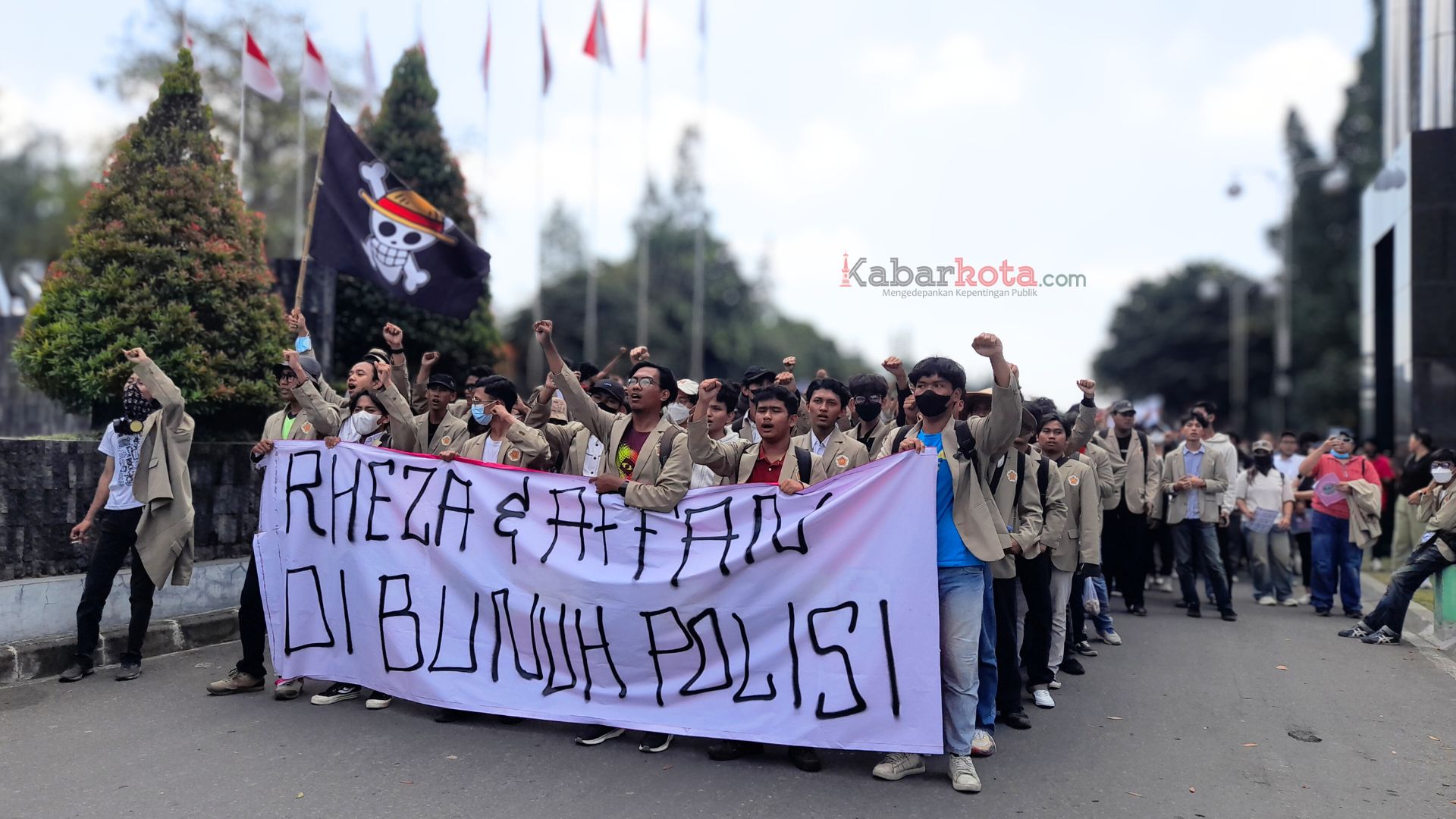 Ribuan orang dari berbagai elemen mahasiswa dan masyarakat sipil datang dari segala penjuru arah, dengan membentangkan spanduk dan poster, serta beberapa membawa bendera. Termasuk bendera one piece.