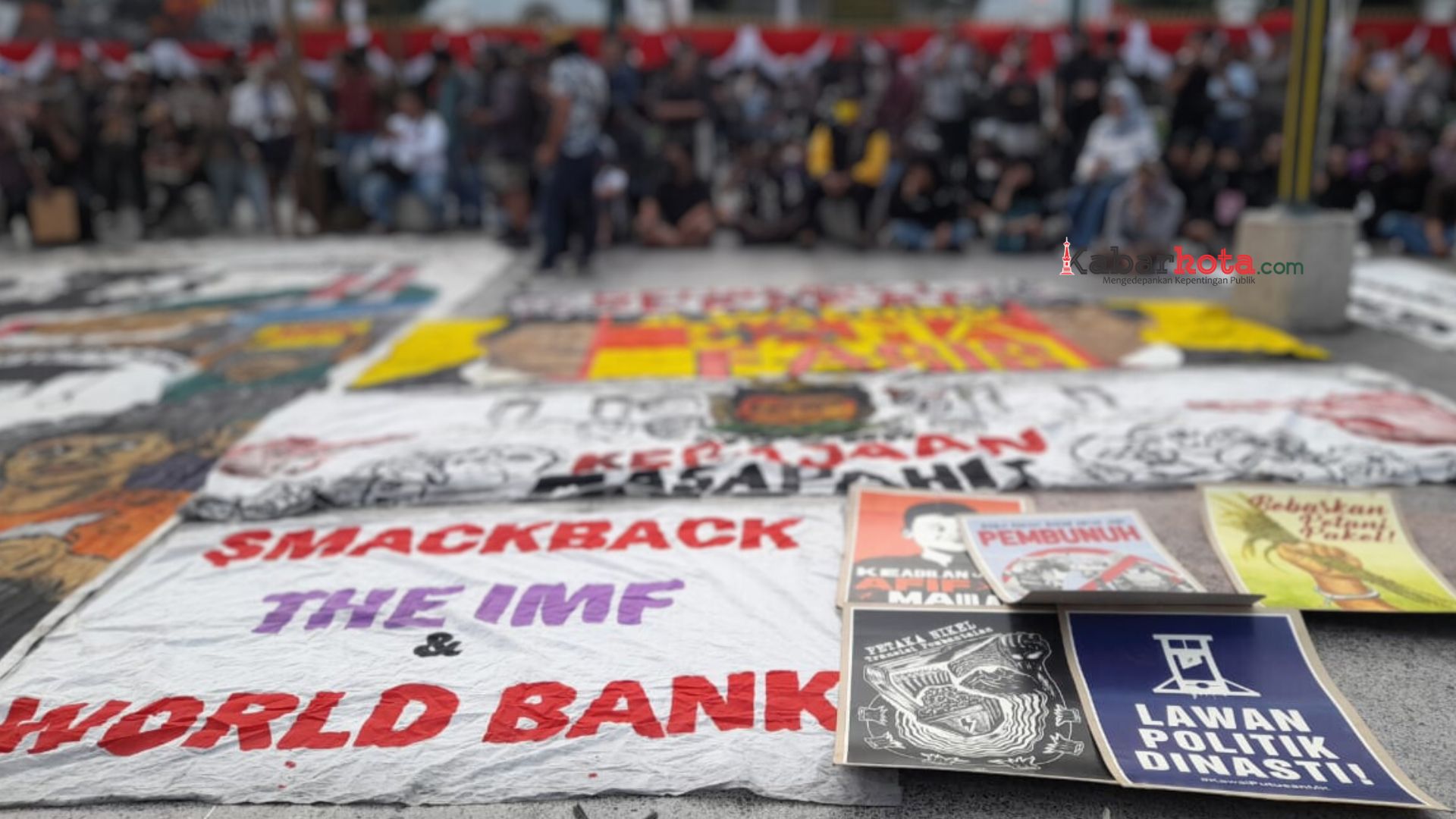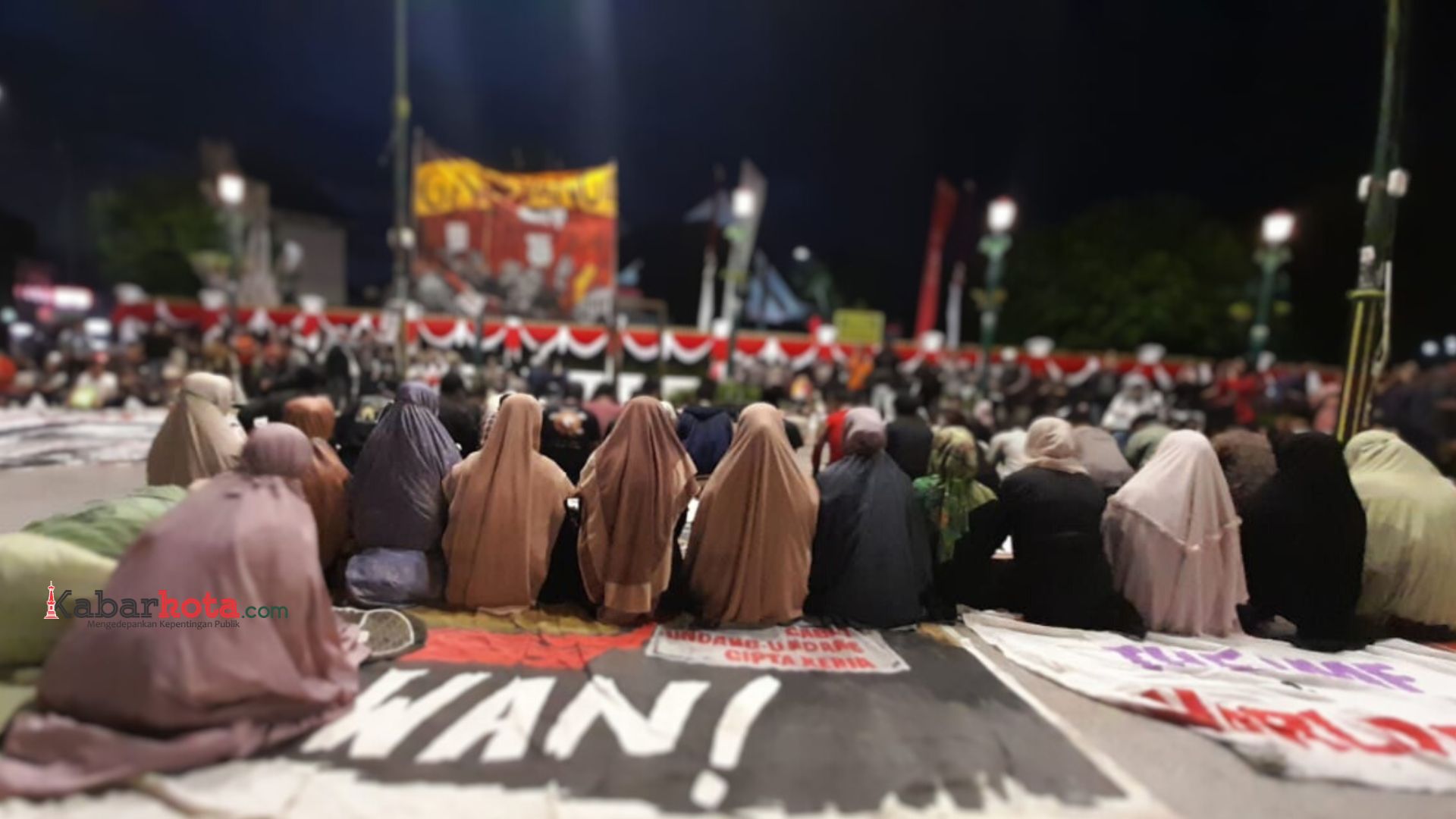 Di sela-sela aksinya, sebagian dari para demonstran sempat melaksanakan salat Magrib berjamaah di atas spanduk-spanduk besar yang digelar di atas lantai.