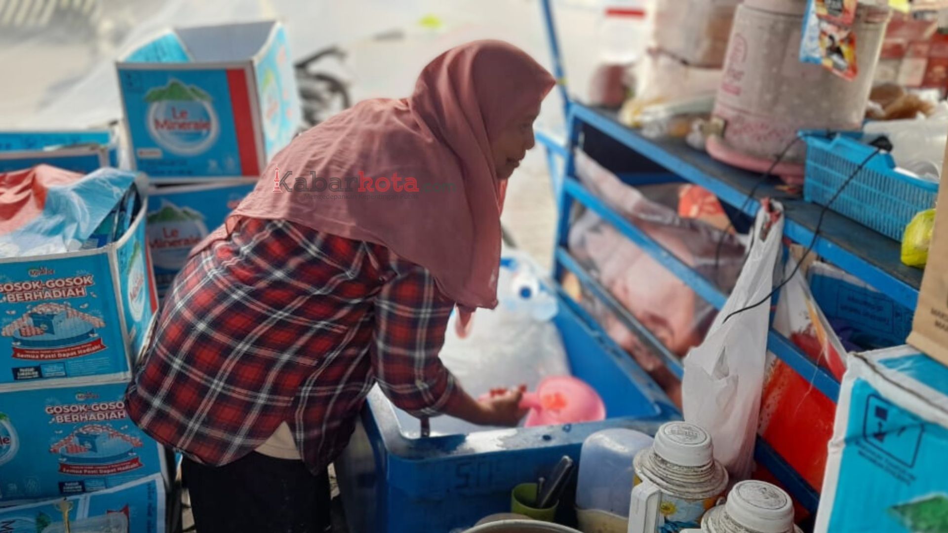 penjual minuman di Alkid, Asih saat melayani pembeli. (dok, kabarkota.com)