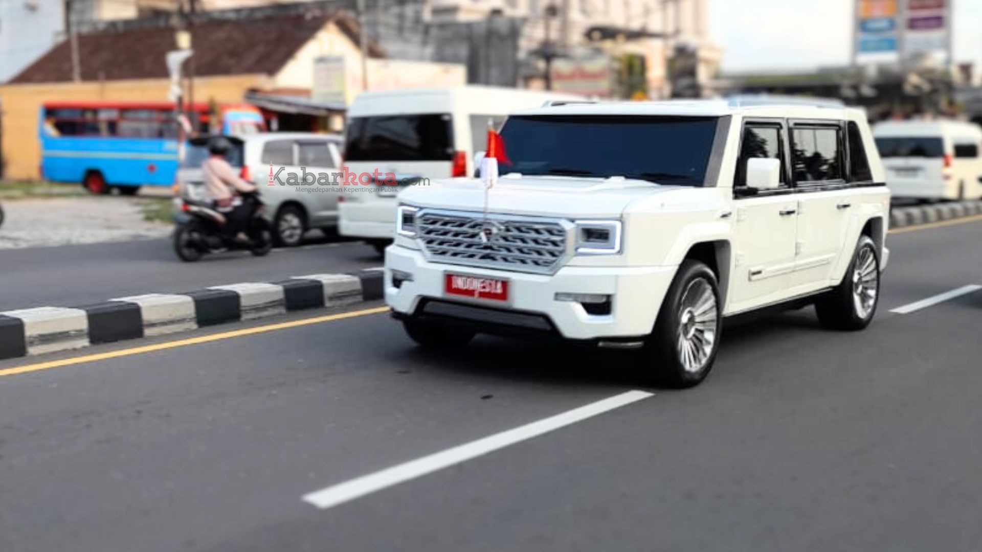Mobil Maung Garuda MV3 Limousine yang ditumpangi Presiden Prabowo melintas di Jalan Magelang, Sleman, pada Kamis (24/10/2024). (dok. kabarkota.com)