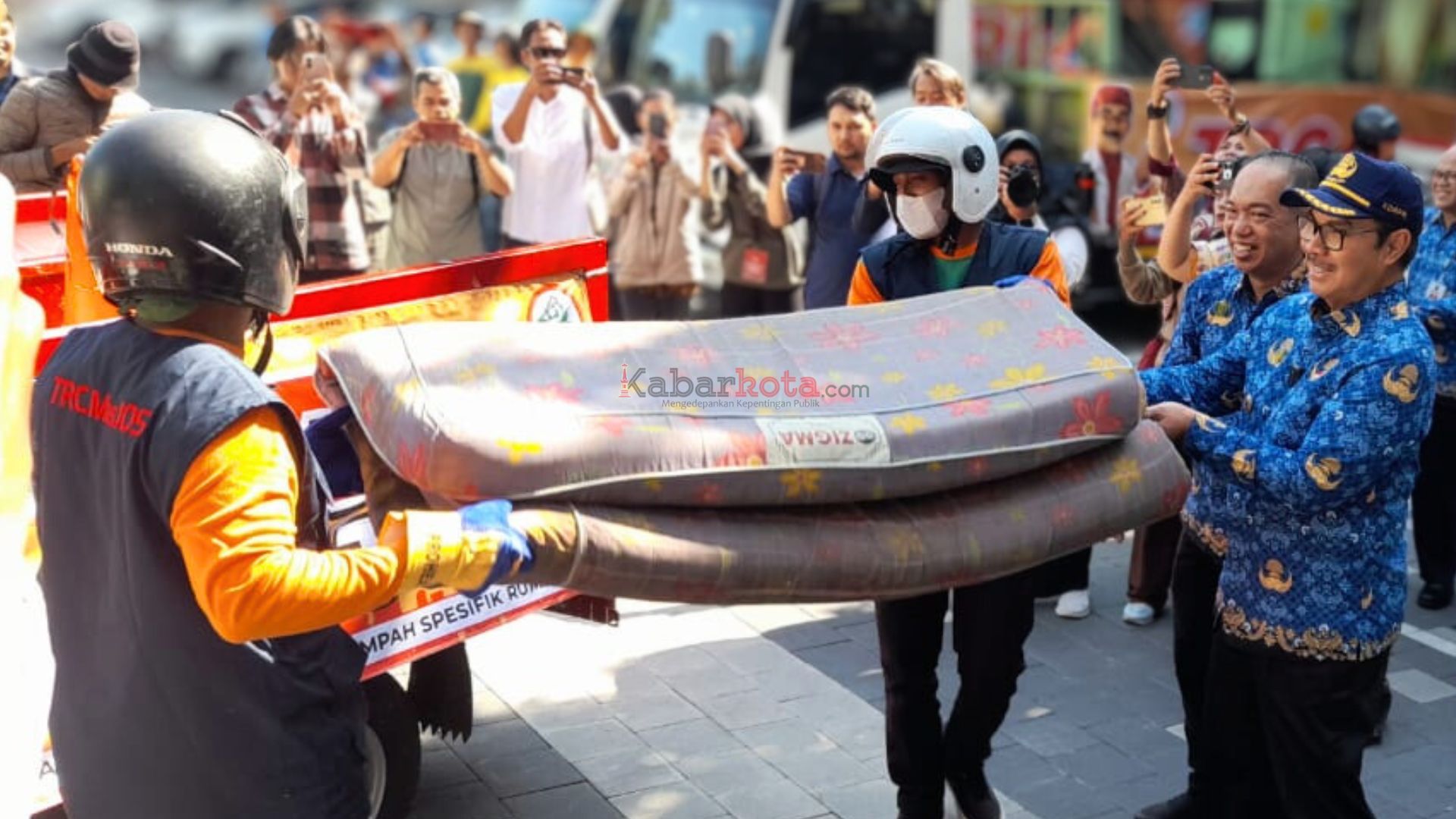 Seorang petugas dengan mengenakan rompi hitam bertuliskan TRC Mas Jos datang menemui walikota, dengan kendaraan baru roda tiga. Ia bersama walikota pun langsung memindahkan kasur-kasur tersebut ke bak motor.