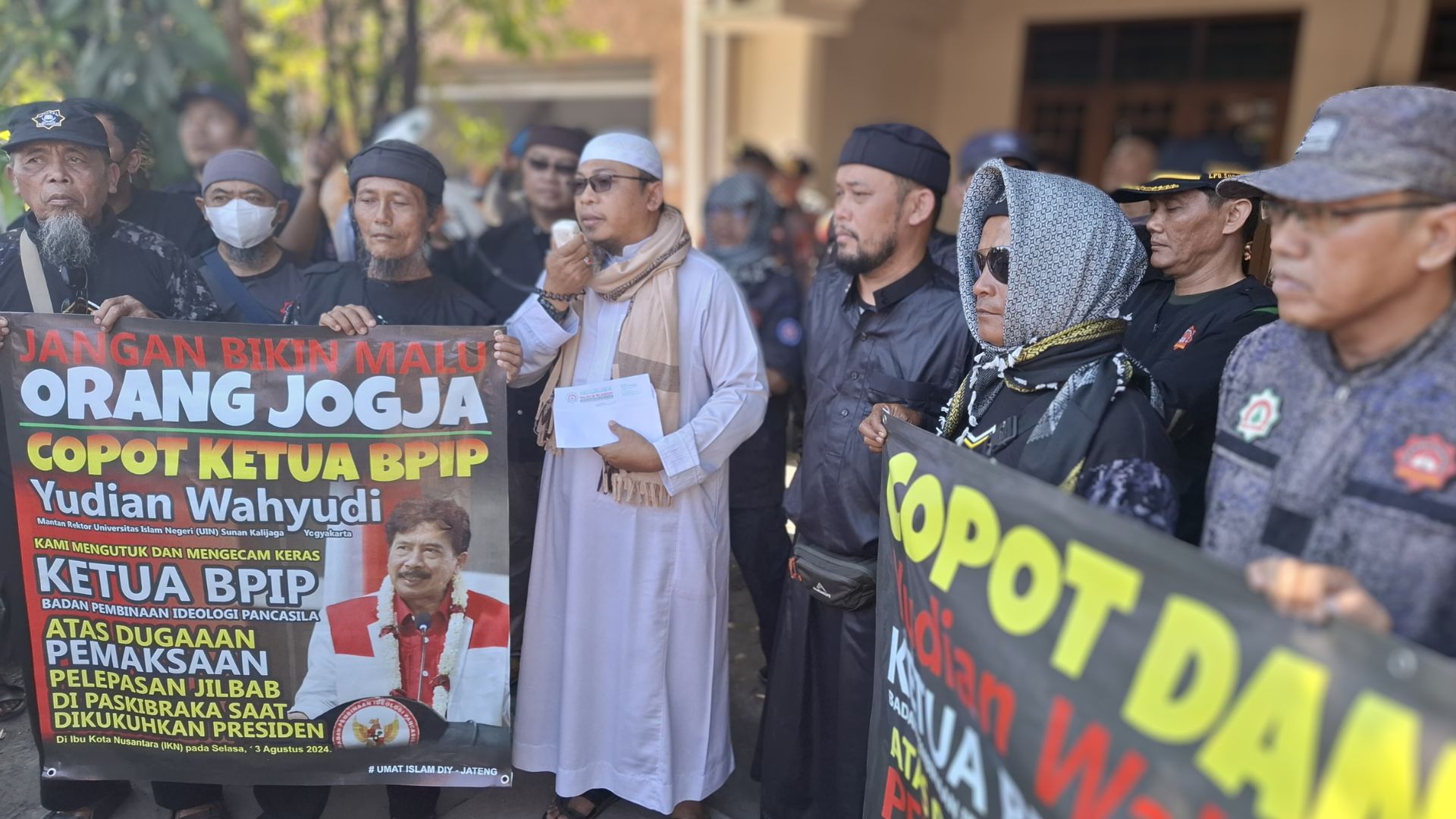 Aksi FJI mendesak agar Ketua BPIP Dicopot dari jabatannya. Aksi digelar di dekat kediaman Yudian Wahyudi di Sleman, pada Minggu (18/8/2024). (dok. istimewa)
