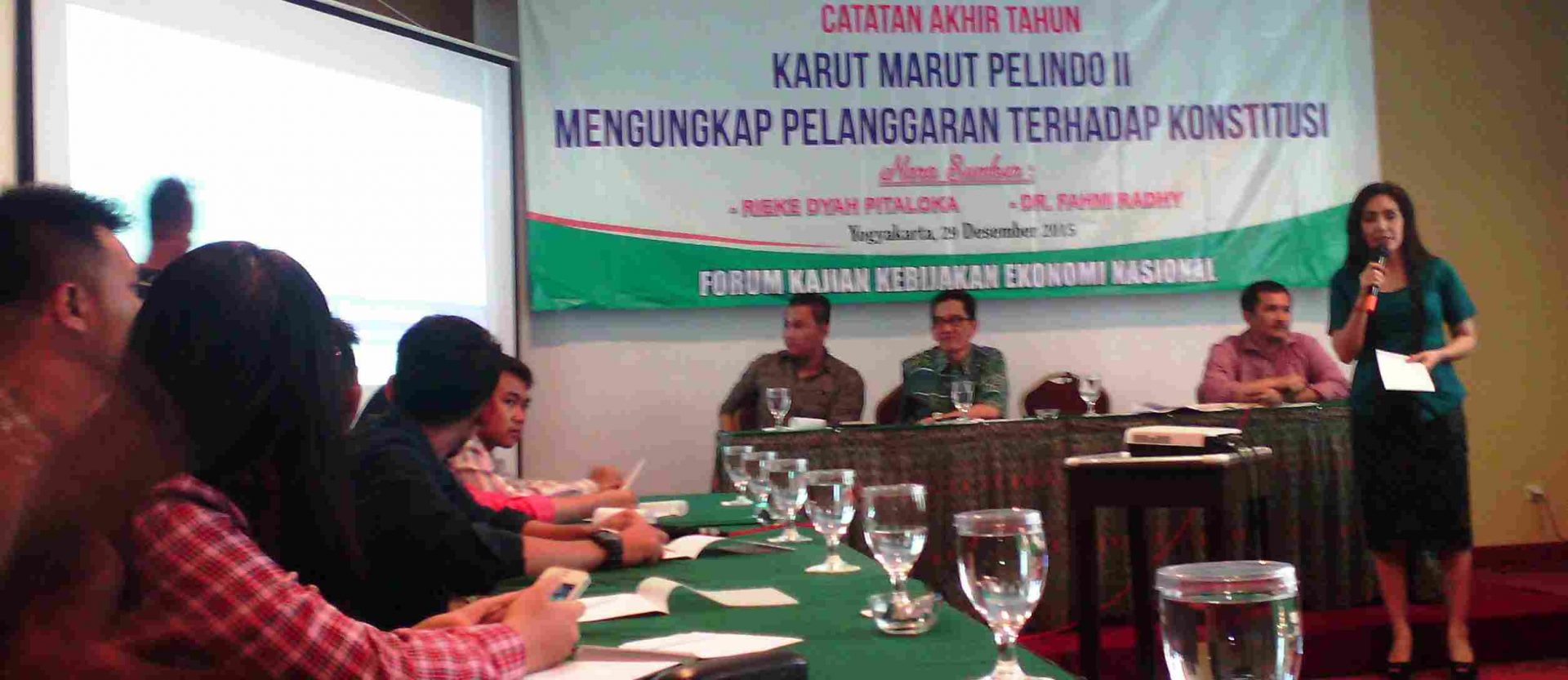 Diskusi tentang Catatan Akhir Tahun: Karut Marut Pelindo II, Mengungkap Pelanggaran Konstitusi di UC UGM, Selasa (29/12). (Sutriyati/kabarkota.com)