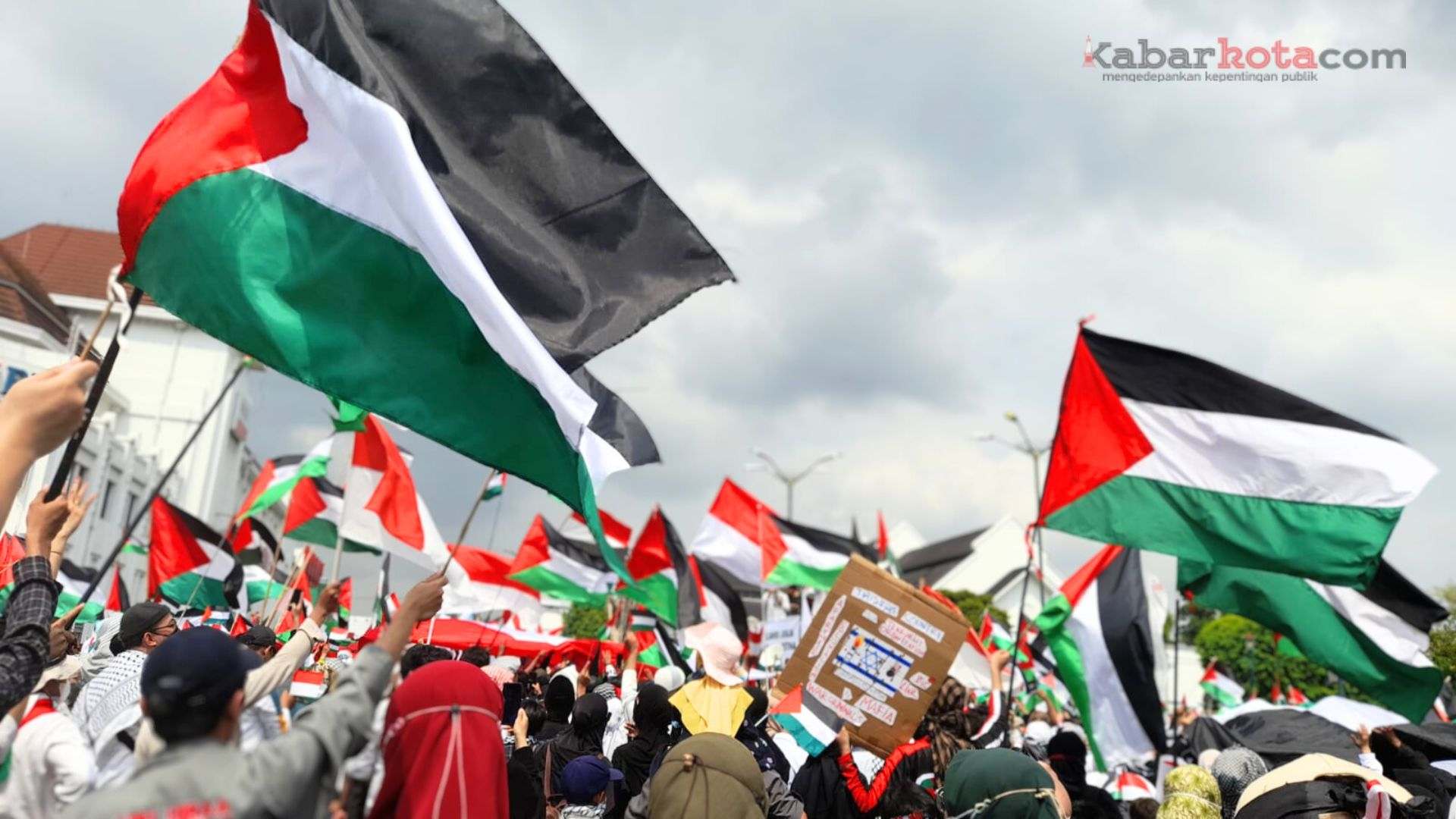 YOGYAKARTA (kabarkota.com) – Pekikan takbir berkumandang berkali-kali di Kawasan Titik Nol Km Yogyakarta, pada Sabtu, 11 November 2023. Ribuan bendera Palestina dan bendera Merah Putih dikibarkan oleh massa aksi dari Aliansi Jogja untuk Palestina sebagai dukungan terhadap perjuangan rakyat Palestina melawan penjajahan Zionis Israel.