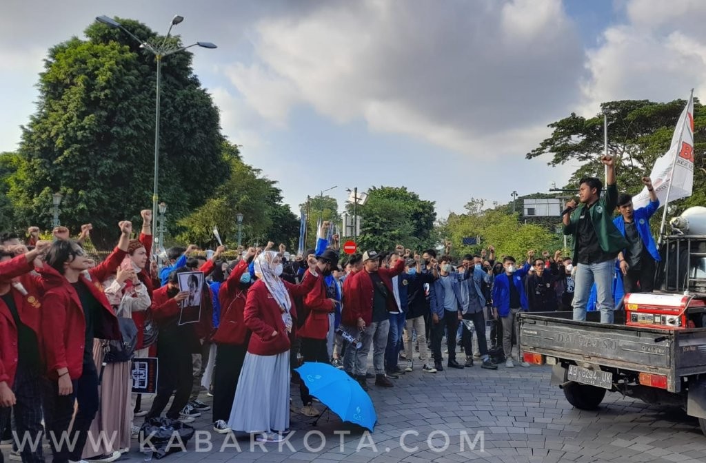 YOGYAKARTA (kabarkota.com) Ratusan mahasiswa yang tergabung dalam Aliansi Badan Eksekutif Mahasiswa Seluruh Indonesia (BEM SI) menggelar aksi unjukrasa di kawasan titik nol km Yogyakarta, pada Jumat (30/9/2021).Dalam aksi kali ini, mereka menyoroti tentang assesment Tes Wawasan Kebangsaan (TWK) yang berujung pada pemberhentian 57 pegawai KPK.
