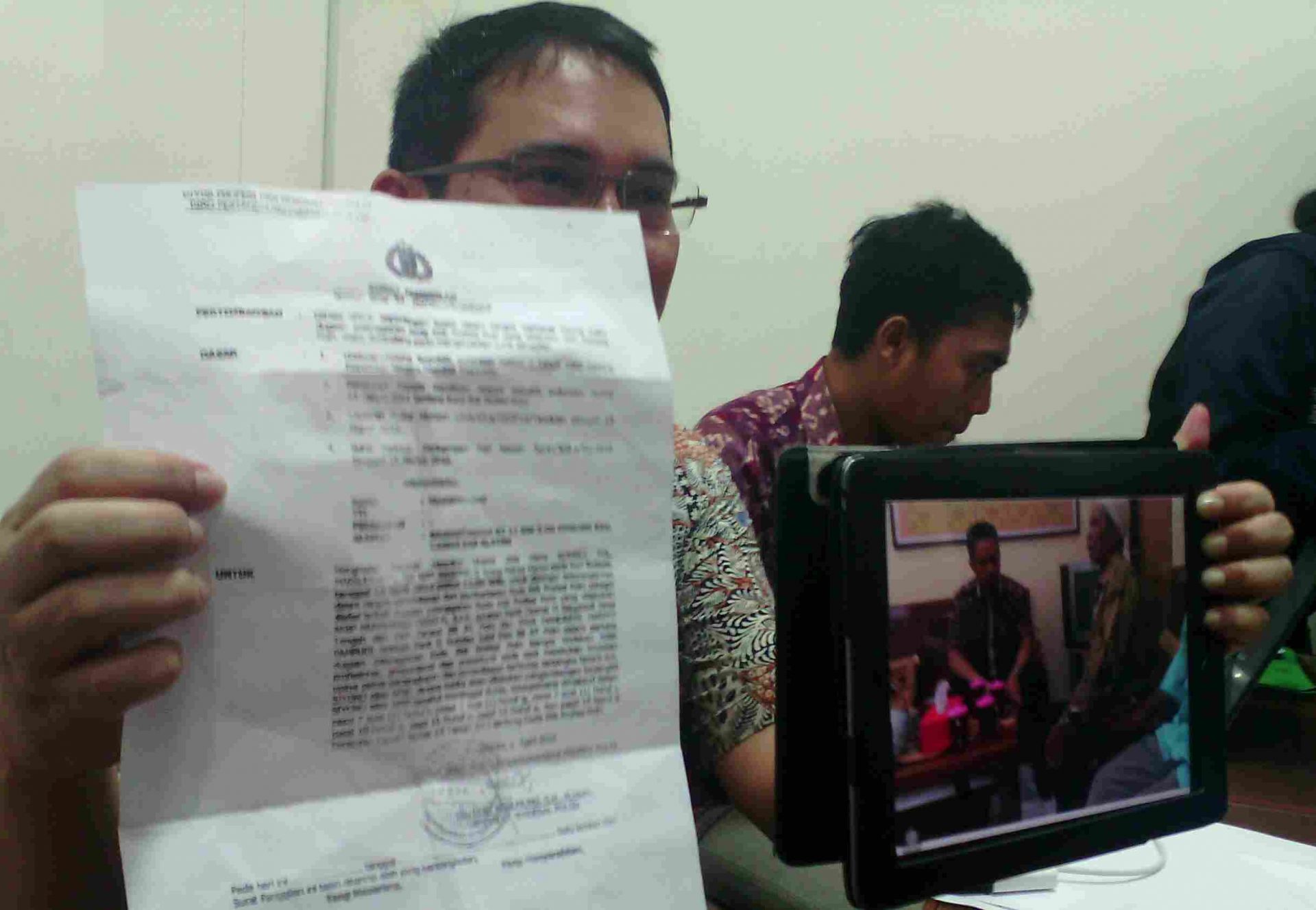 Kuasa hukum keluarga Siyono, Trisno Raharjo menunjukkan bukti surat pemanggilan atas ayah almarhum dan potret mereka saat berada di Polsek Cawas. (Sutriyati/kabarkota.com)