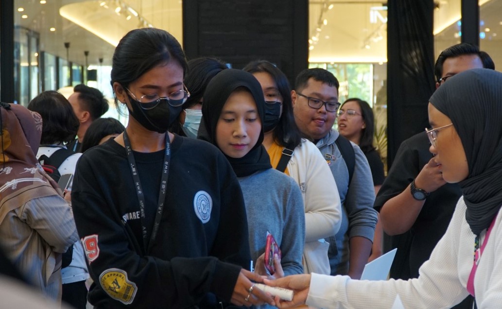Pembagian tabir surya produk Kymm Skin ke costumer (dok. istimewa)