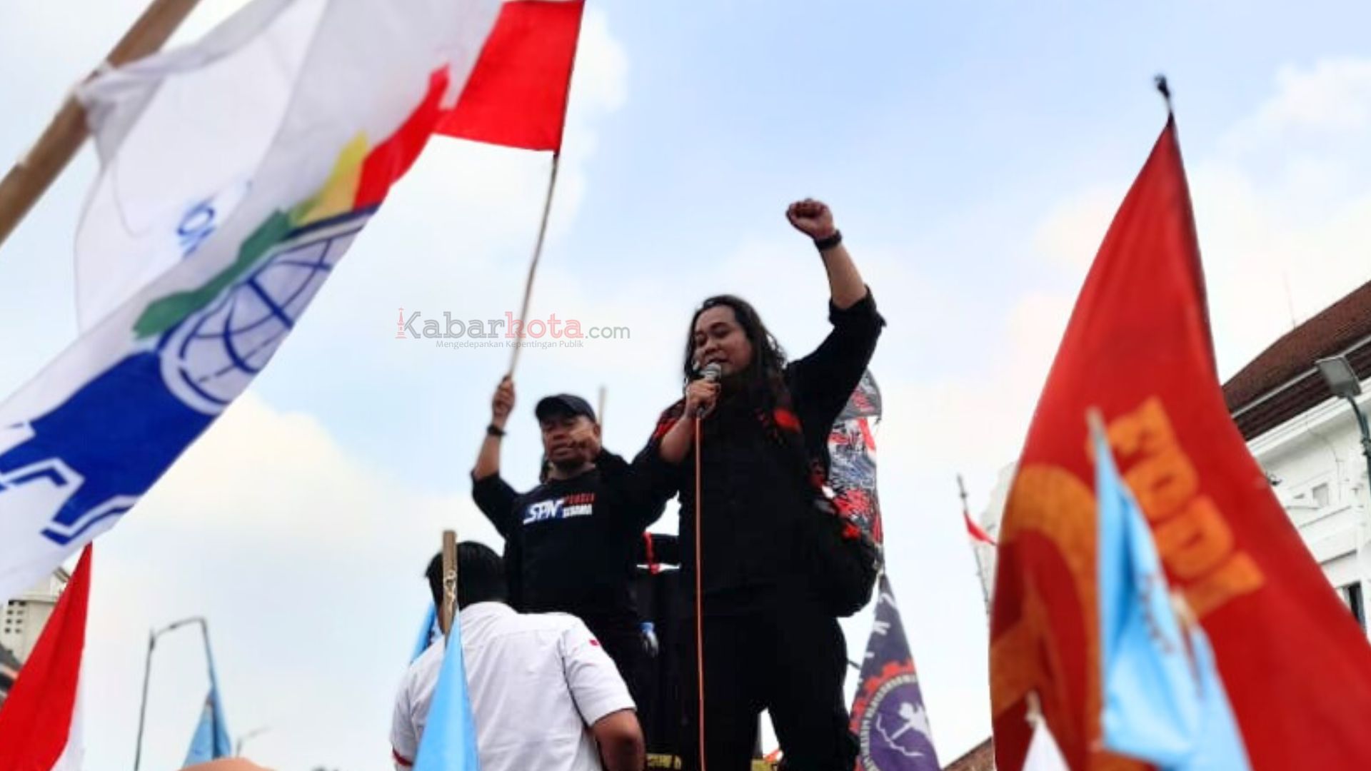 Aksi MPBI memperingati Hari Buruh Internasional di Titik Nol Km Yogyakarta, pada Rabu (1/5/2024). (dok. kabarkota.com)