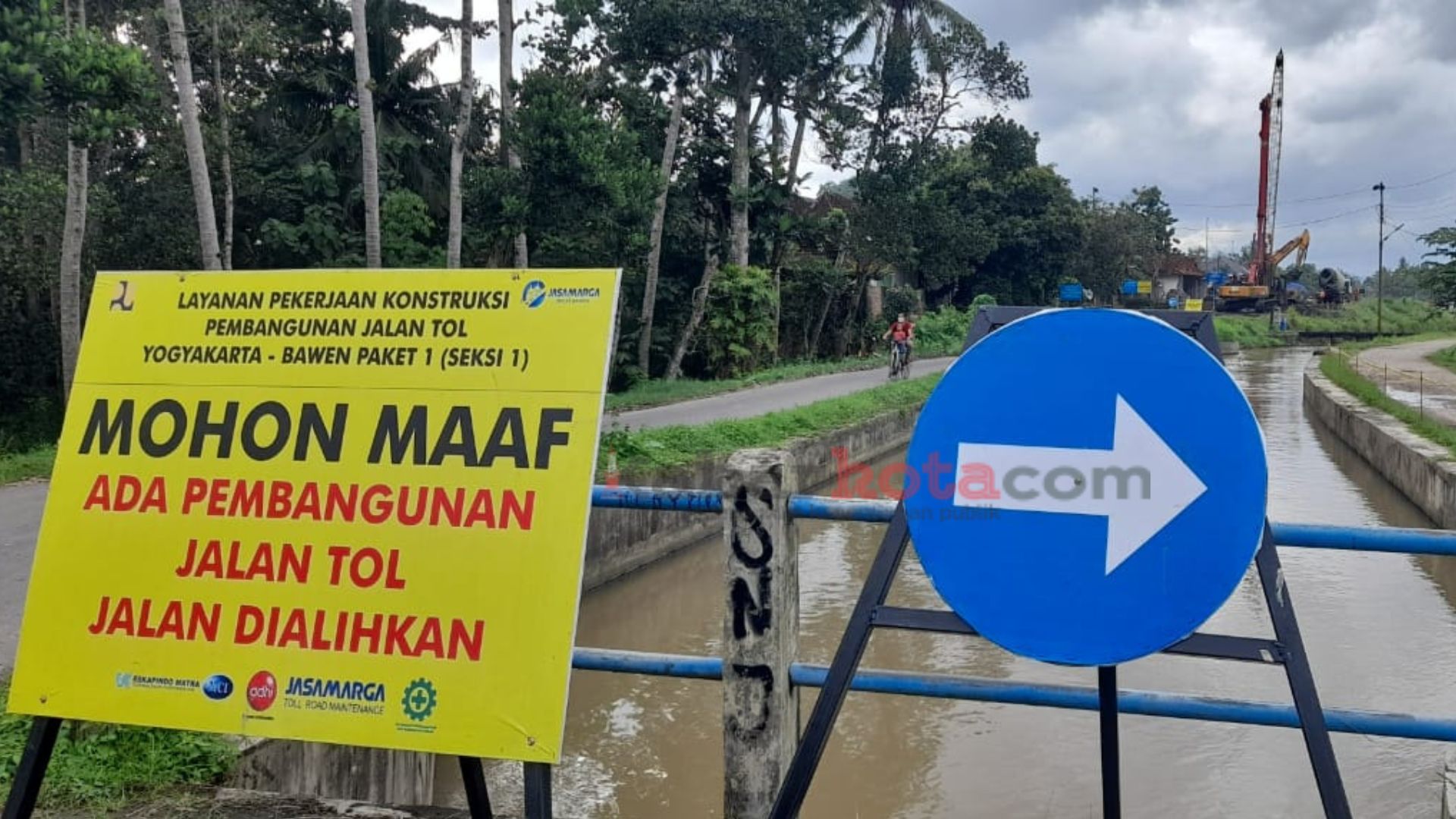 Jalan dari selokan Mataram di Padukuhan Jembangan menuju Jalan Seyegan – Godean juga dialihkan melalui sisi utara selokan, karena alat berat untuk pengeboran terpancang di tengah jalan.