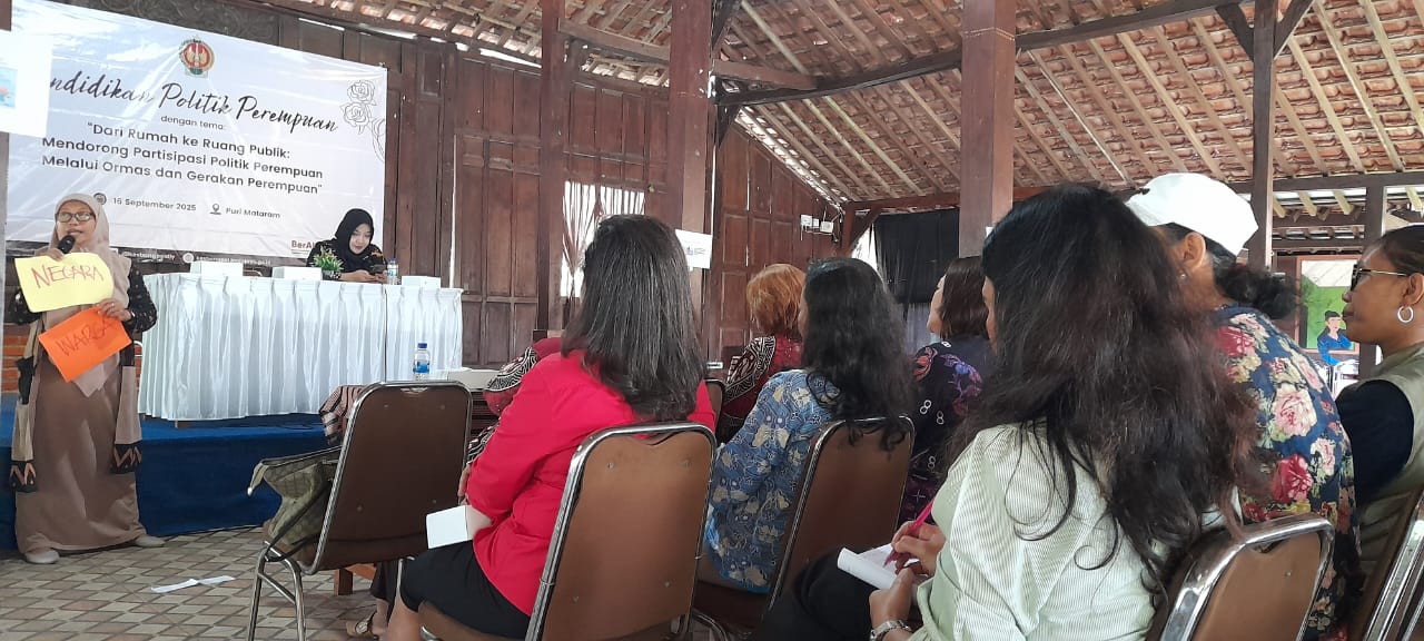 Diskusi kelompok itu adalah salah satu sesi dalam Pendidikan Politik Perempuan yang bertema “Dari Rumah ke Ruang Publik: Mendorong Partisipasi Politik Perempuan melalui Ormas dan Gerakan Perempuan yang diselenggarakan oleh Kesatuan Bangsa dan Politik (Kesbangpol) DIY, di Puri Mataram Sleman, pada 16 September 2025.