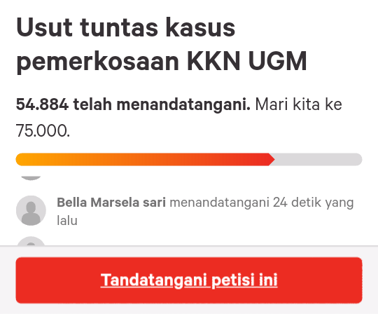 Dari pantauan kabarkota.com, petisi yang diunggah sekitar 22 jam lalu, hingga pukul 12.00 WIB telah ditandatangani oleh lebih dari 54 ribu netizen. Pengunggah petisi atas nama admin DSM berharap, petisi bisa mencapai setidaknya 75 ribu.