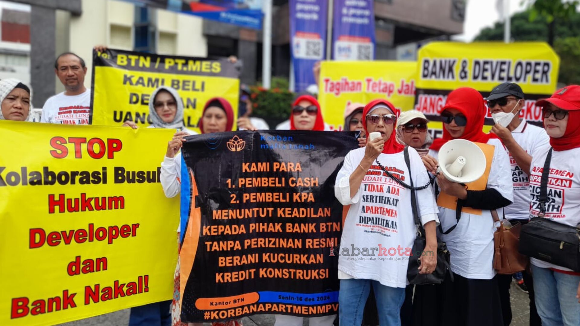 Aksi damai puluhan konsumen apartemen MPV di Kantor BTN Cabang Yogyakarta, pada Senin (16/12/2024). (dok. kabarkota.com)
