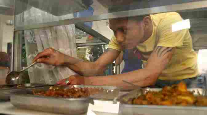 Norman Kamaru sedang mempersiapkan jualannya. Mantan anggota Brimob ini banting setir jadi pengusaha. (foto. liputan6.com)