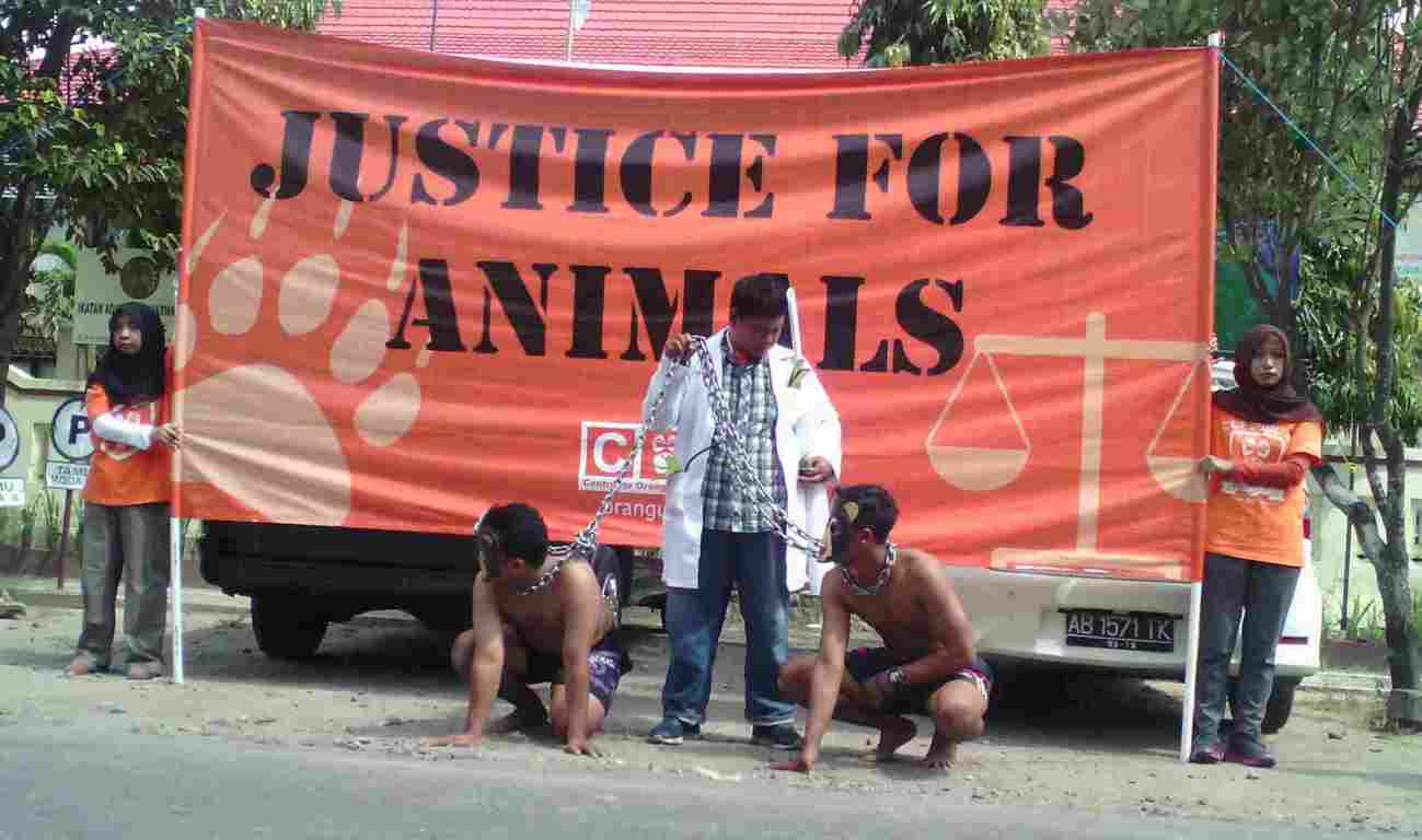 BANTUL (kabarkota.com) – Sejumlah aktifis perlindungan satwa liar yang tergabung dalam Orangutan Friends Kelompok Relawan dan Pendukung Center for Orangutan Protection (COP), Senin (25/7/2016), menggelar aksi unjuk rasa di depan kantor Kejaksaan Negeri (Kejari) Bantul, DIY.