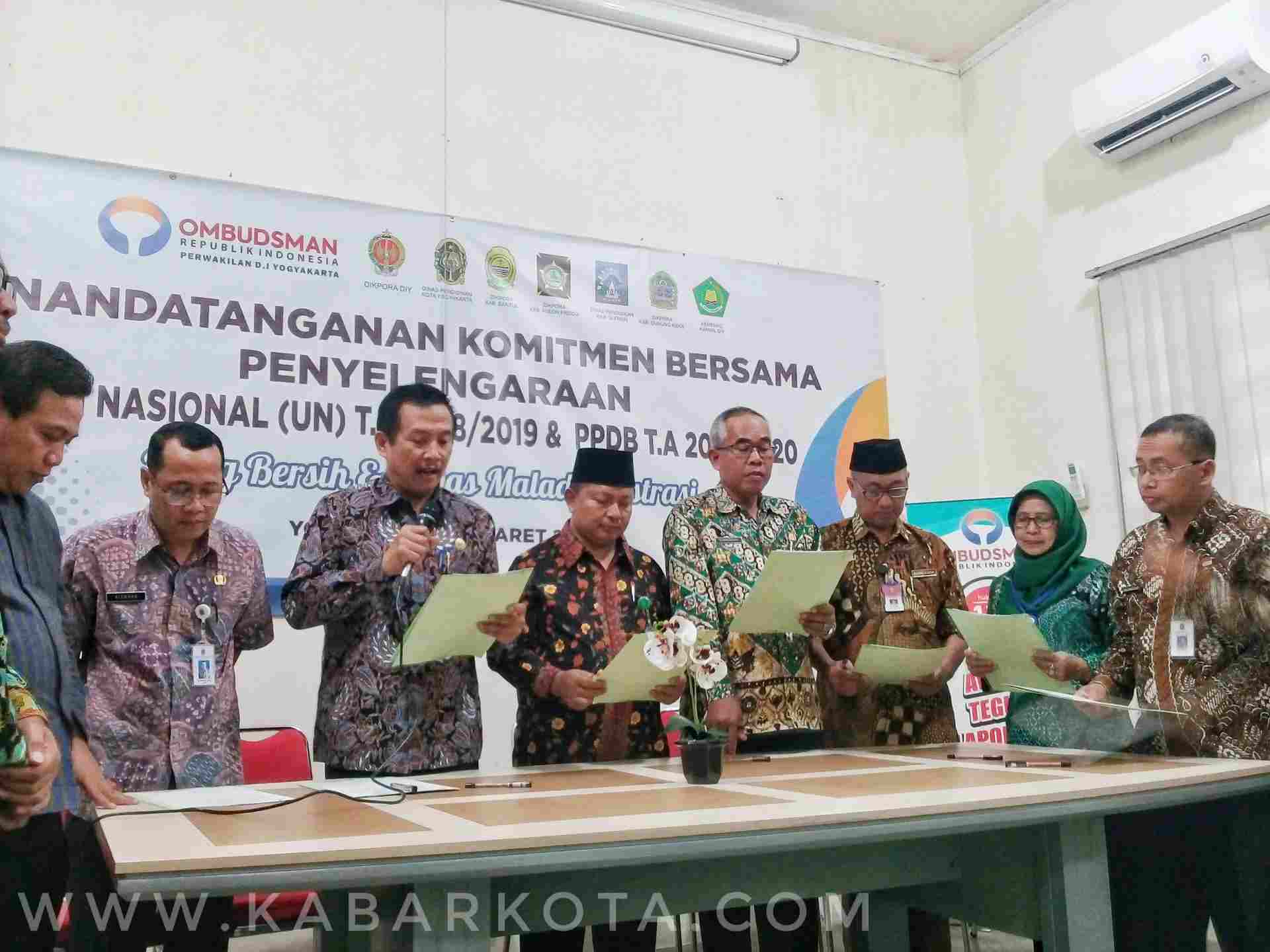 Ilustrasi: Penandatanganan Komitmen Bersama Penyelenggaraan UN dan PPDB 2019 yang Bersih dan Bebas Maladministrasi, di kantor ORI Perwakilan DIY, baru-baru ini. (Dok. kabarkota.com)