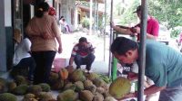 Wisatawan tengah memilih durian di pasar Durian Ngluwar yang berdekatan …