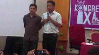 Ketua umum AJI, Suwarjono (kanan), dan Sekjen AJI terpilih periode …