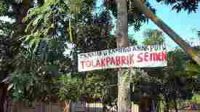 Ilustrasi: papan penolakan warga atas pembangunan pabrik semen di Rembang …