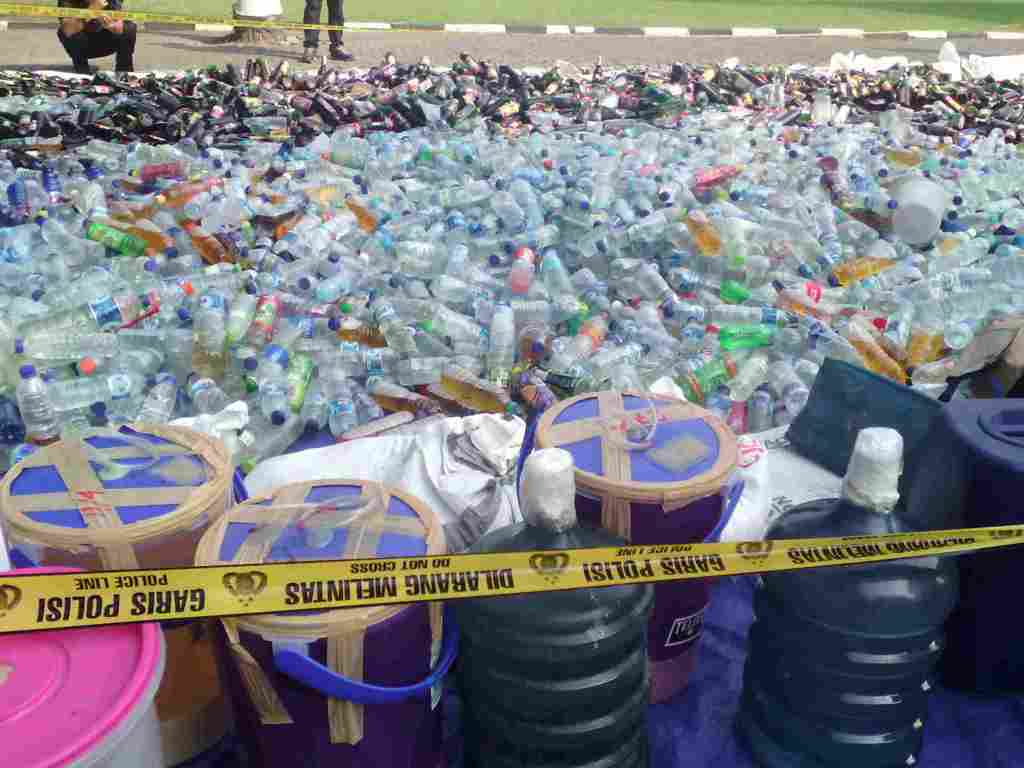 Ilustrasi: Ribuan botol miras termasuk minuman oploaan yang siap dimusnahkan Polda DIY. (sutriyati/kabarkota.com)