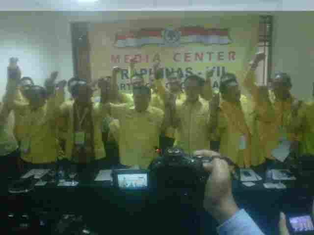 Jajaran pengurus Fraksi Partai Golkar DPR RI saat memberikan keterangan pers di Hotel Melia Purosani, Selasa (18/11). (Ahmad Mustaqim/kabarkota.com)
