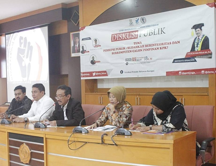 Diskusi Publik tentang “Persepsi Publik : Sudahkah Berintegritas dan Berkompeten Calon Pimpinan KPK?”, di Rektorat UIN Sunan Kalijaga Yogyakarta, Senin (9/9/2019). (dok. Mustofa Roja)